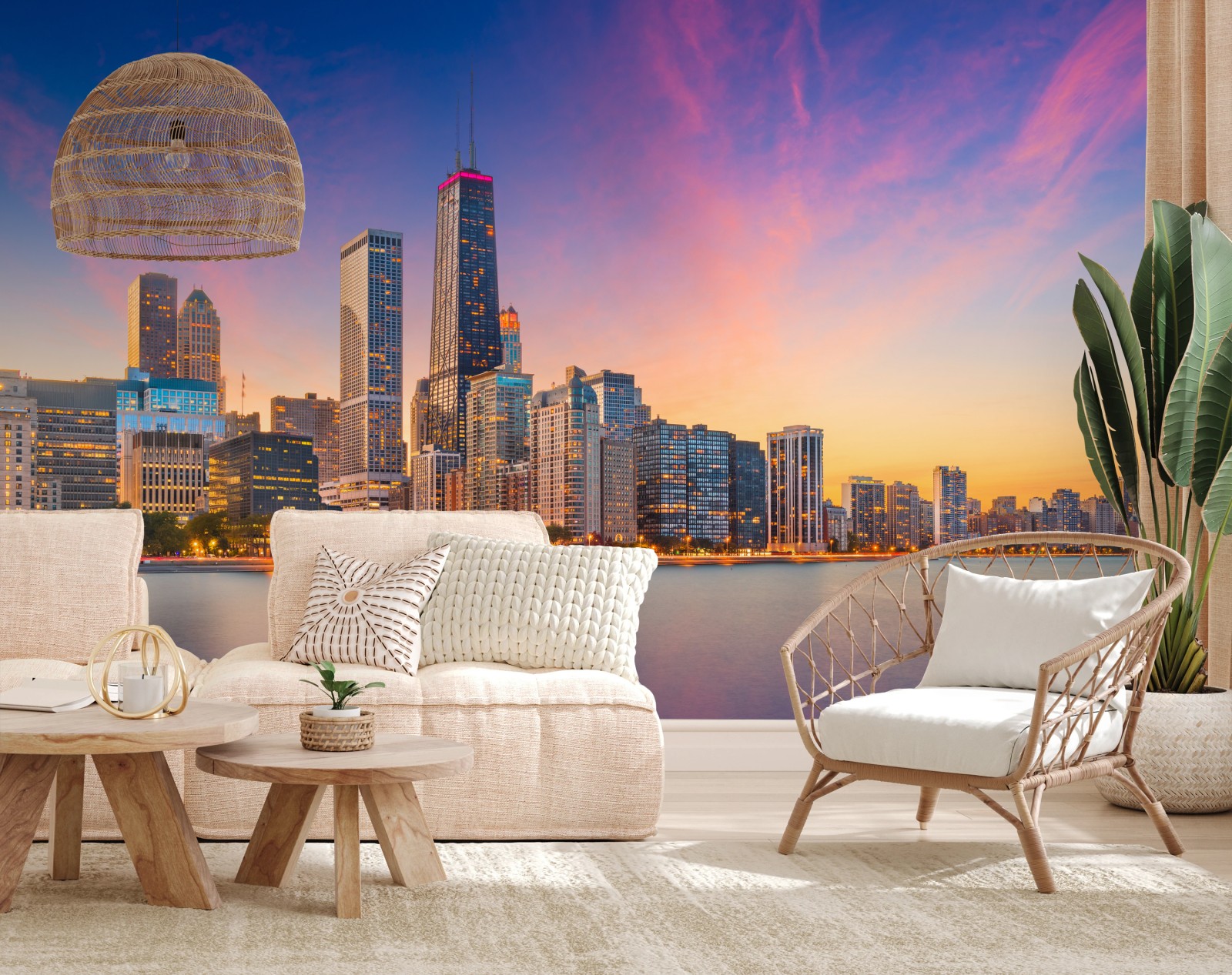 Fototapete Chicago skyline bei dämmerung