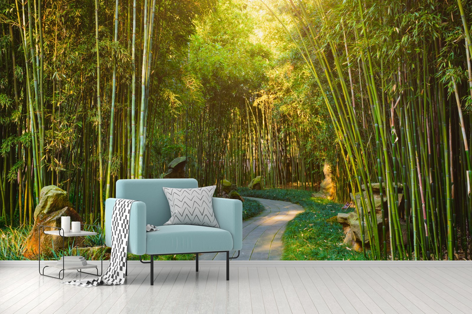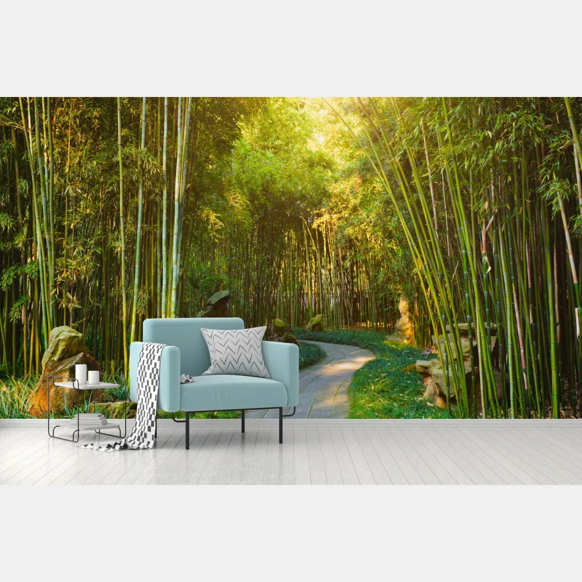 Fototapete Ruhiger bambuswald mit pfad