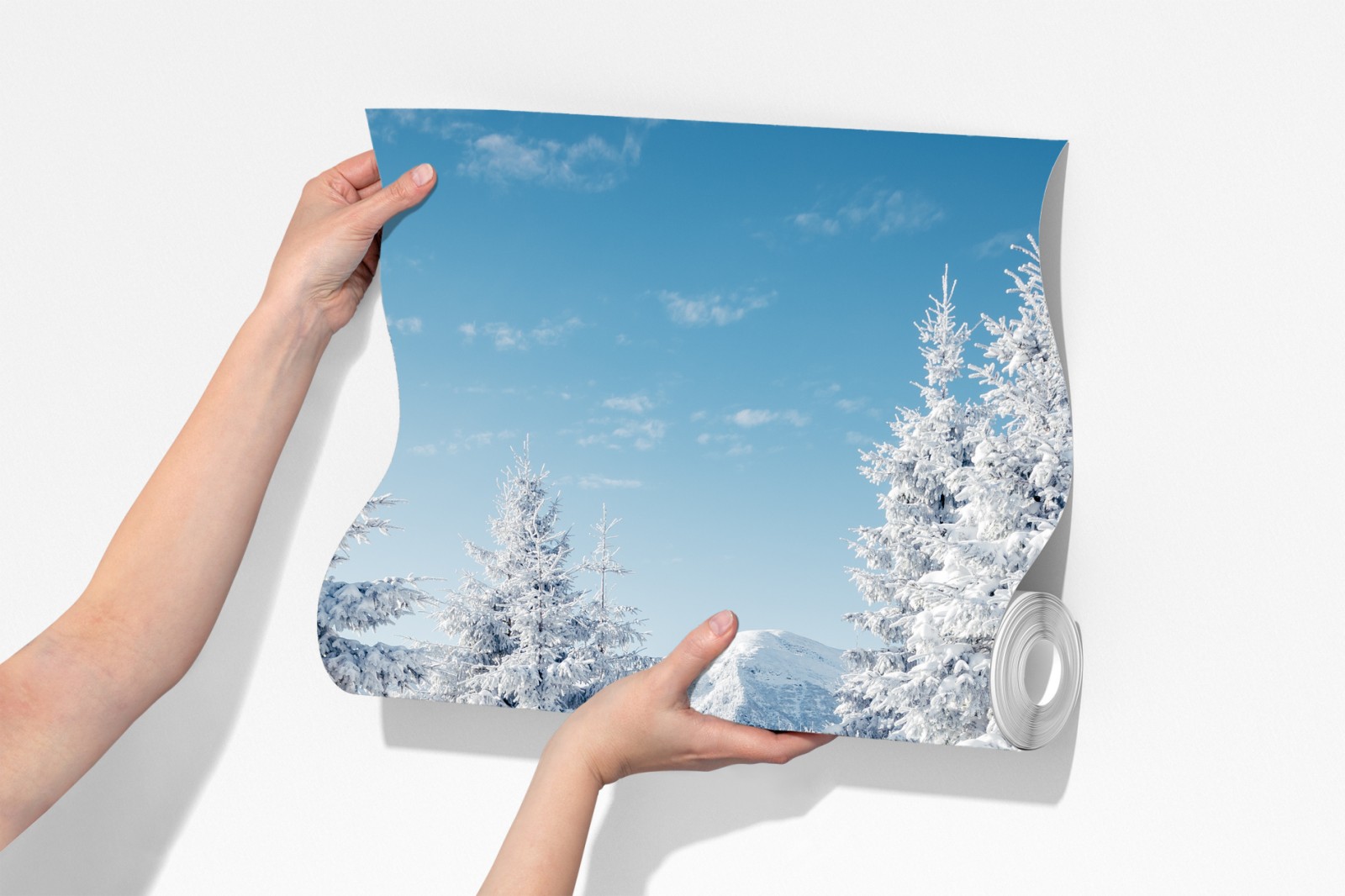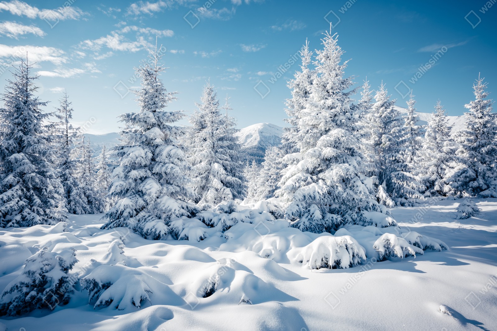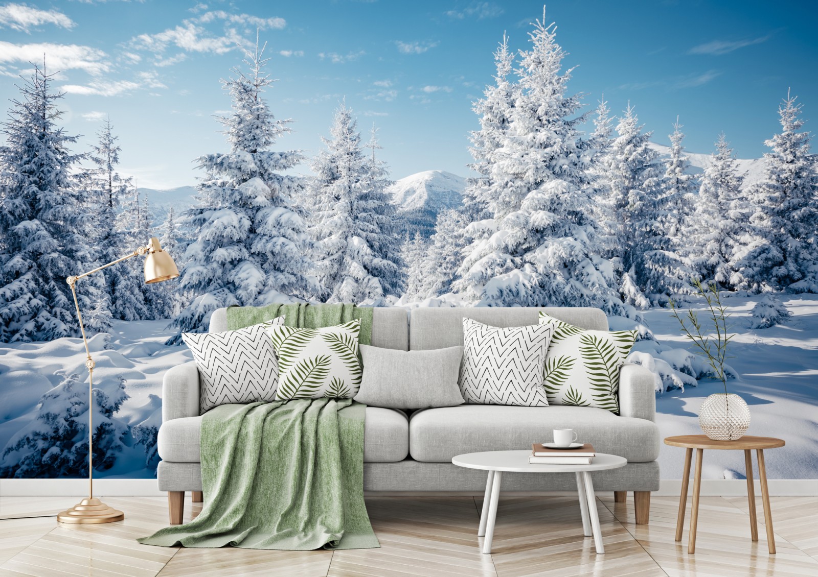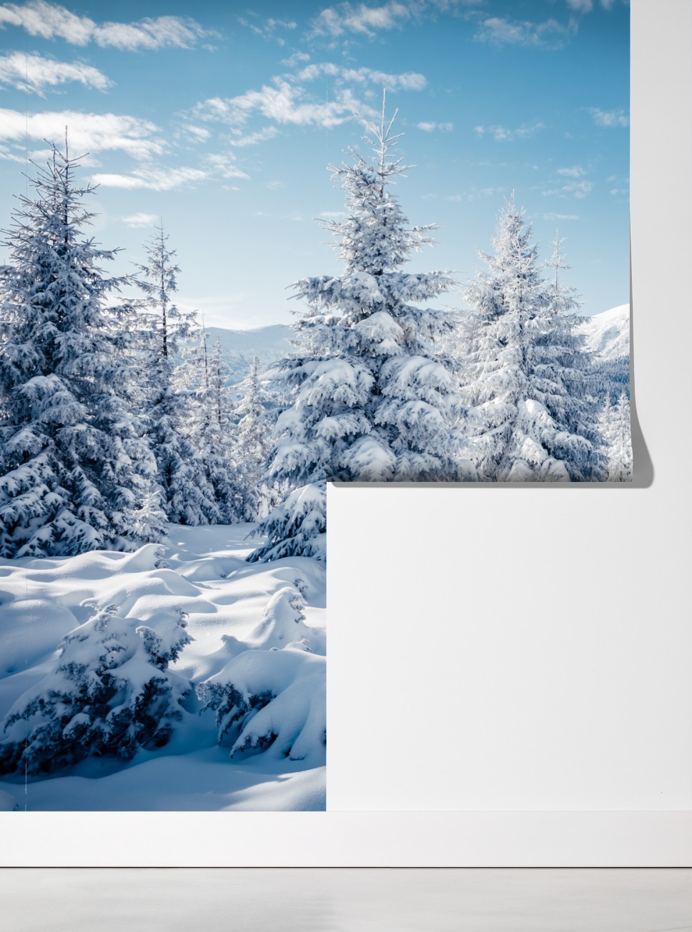 Erleben Sie ruhige Winterlandschaften mit schneebedeckten Fichten in den Karpaten, ideal um natürliche Gelassenheit ins Zuhause zu holen.