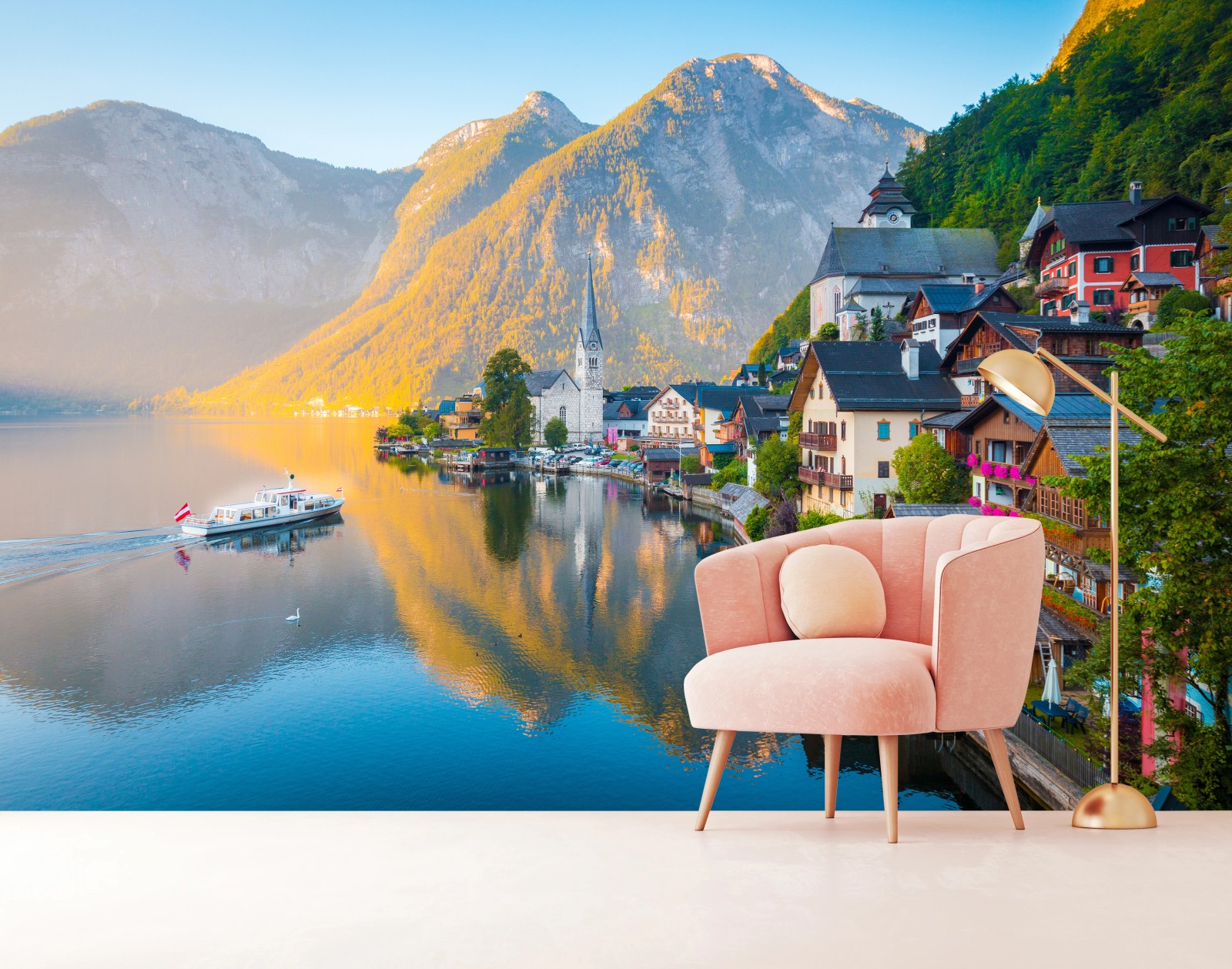 Fototapete Morgendlicher lichtglanz über Hallstatt am see