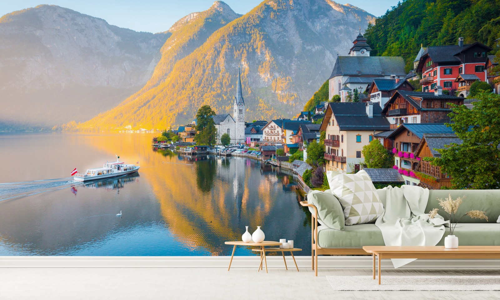 Fototapete Morgendlicher lichtglanz über Hallstatt am see