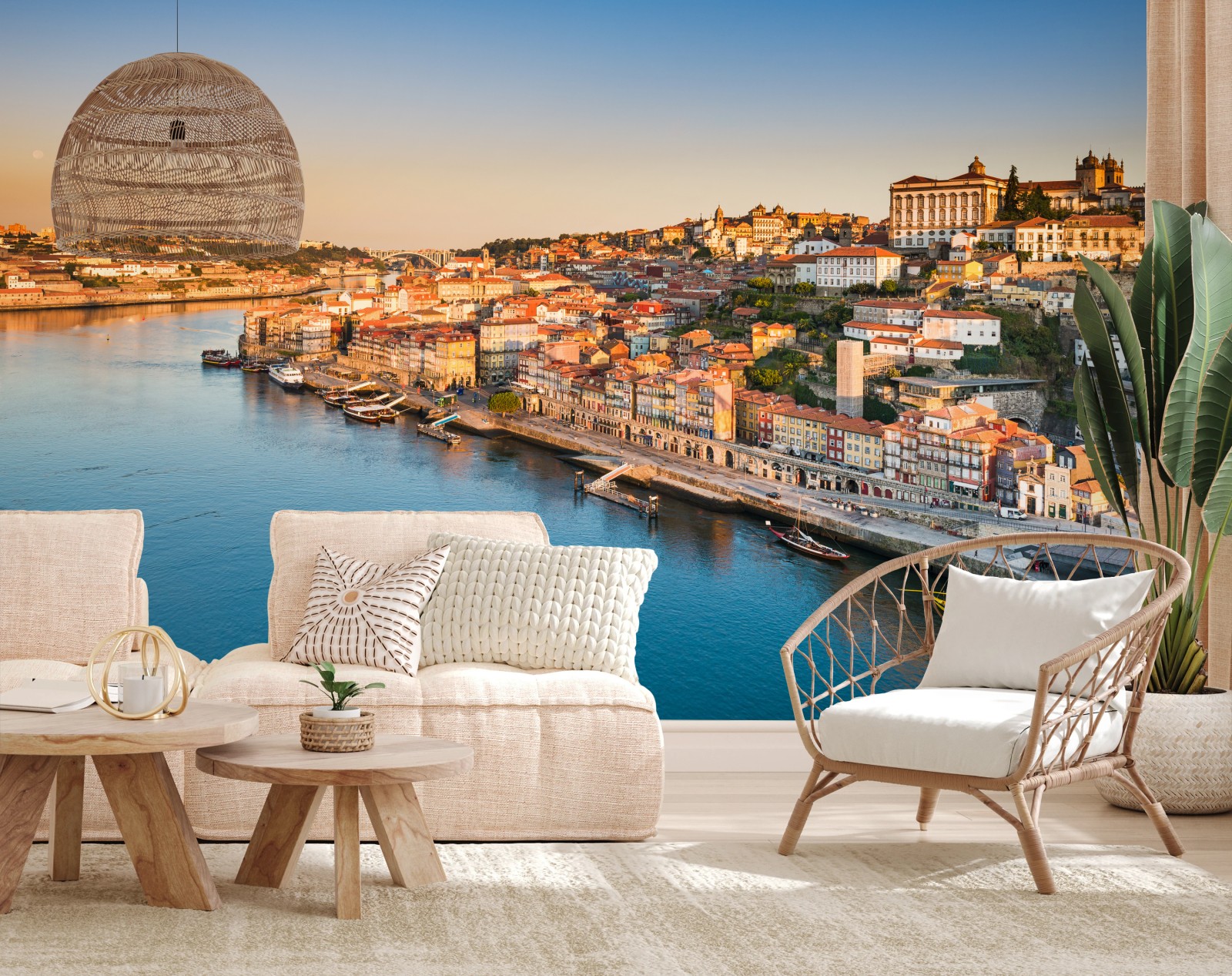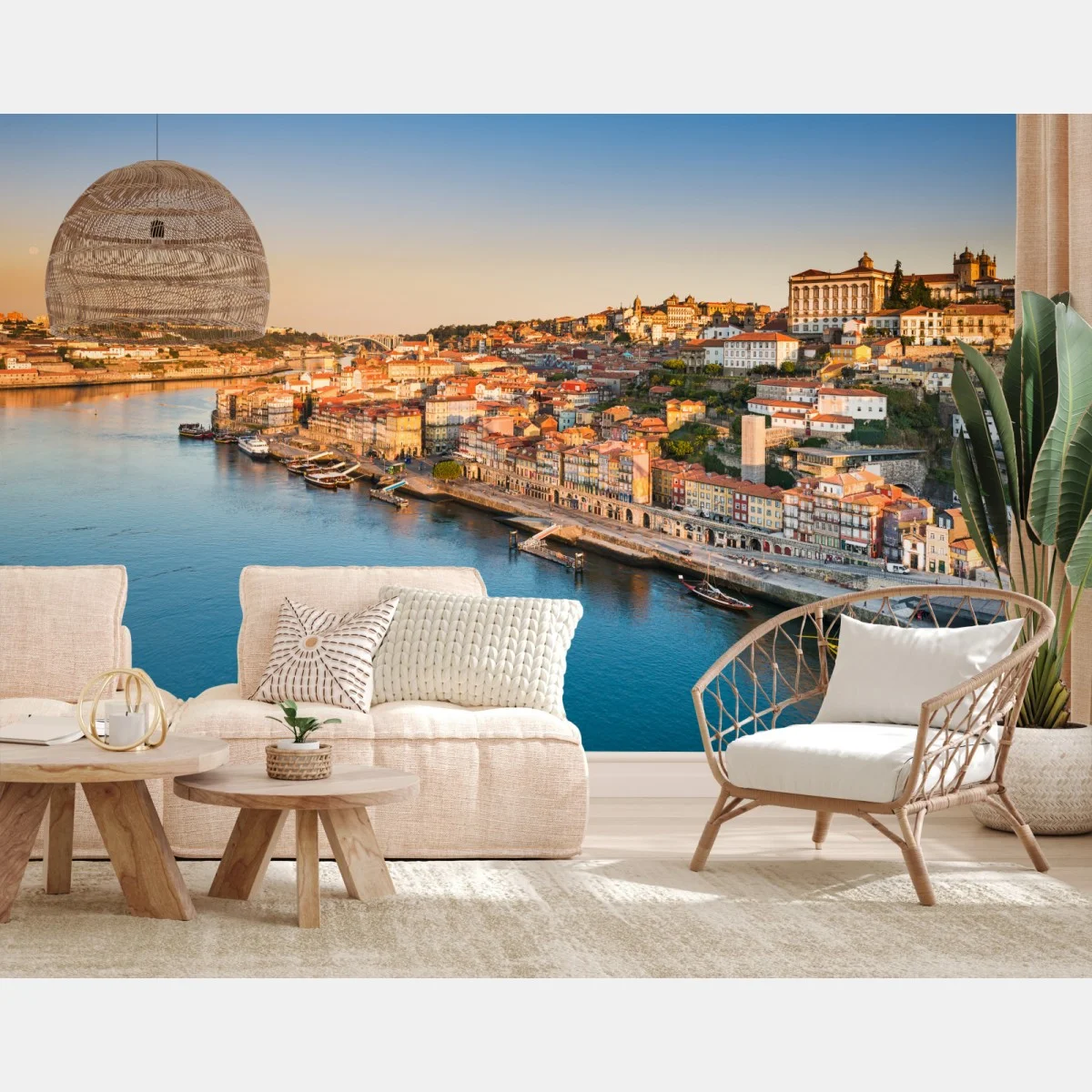 Fototapete Sonnige Porto ufer-skyline im goldenen licht