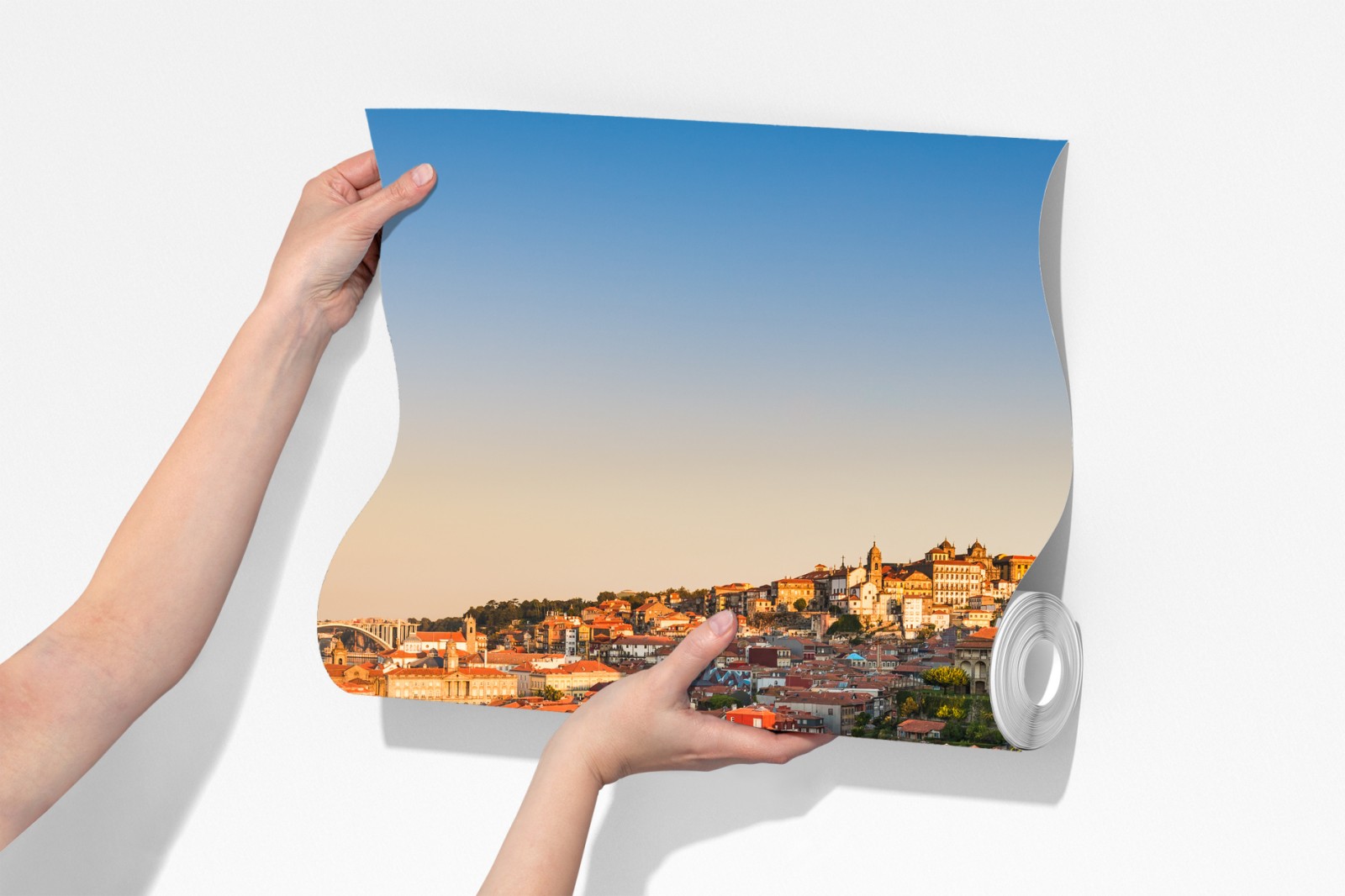 Fototapete sonnige Porto ufer-skyline im goldenen licht
