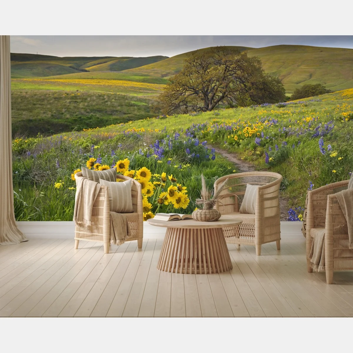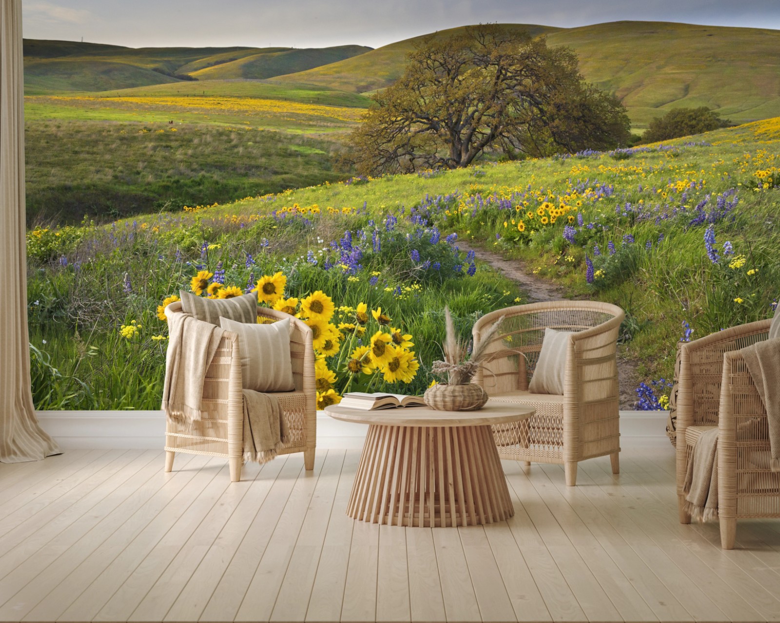 Bringen Sie die Ruhe sanfter Hügel und lebendiger Wildblumen in Ihr Zuhause mit dieser idyllischen Wiesenlandschaft.MehrWeniger