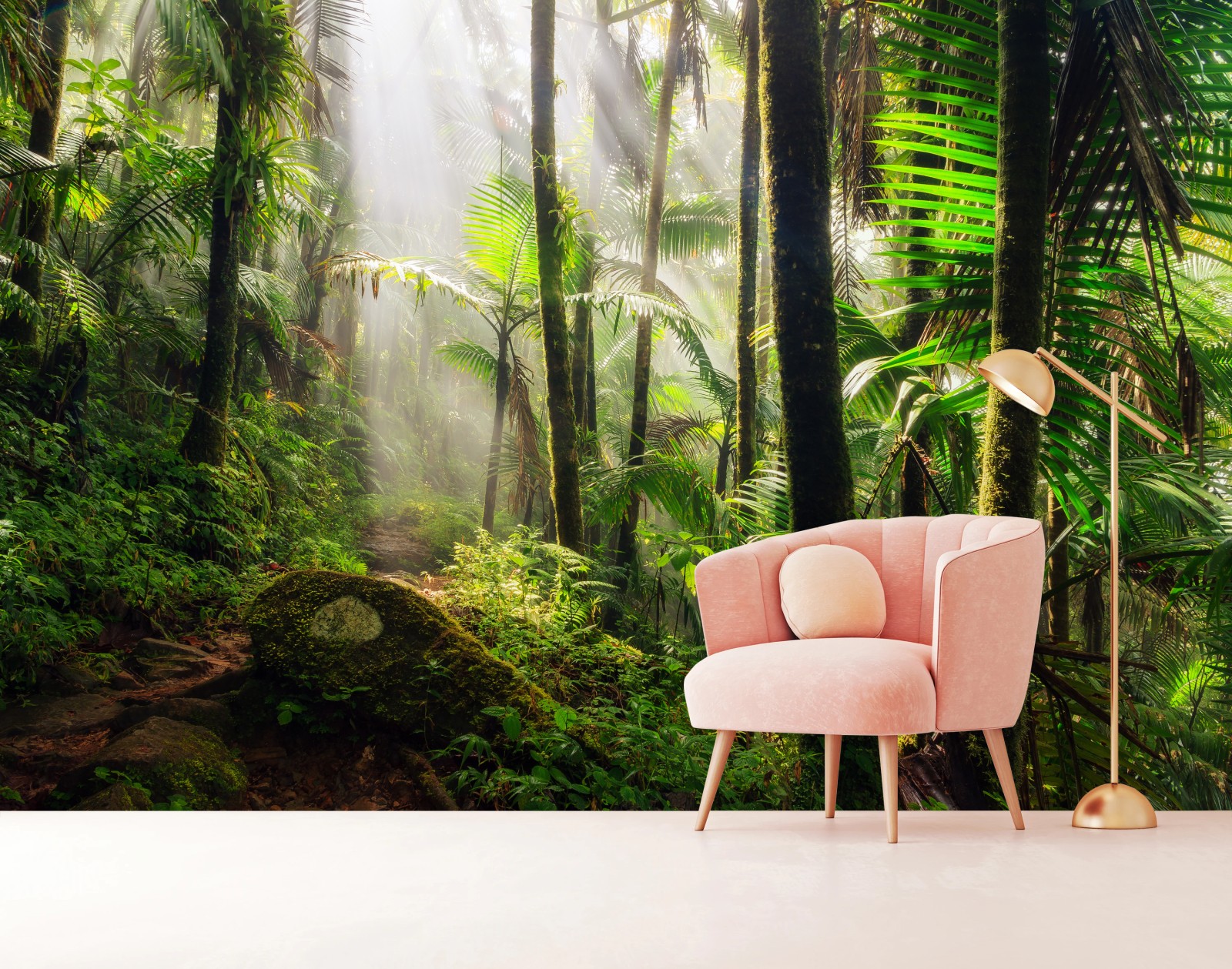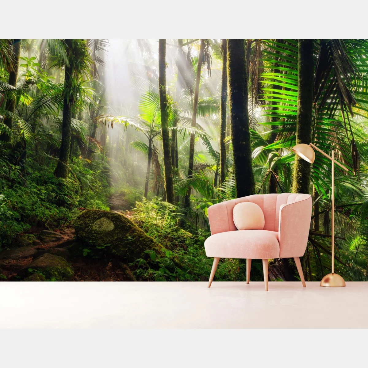 Fototapete Tropischer regenwald mit sonnenstrahlen