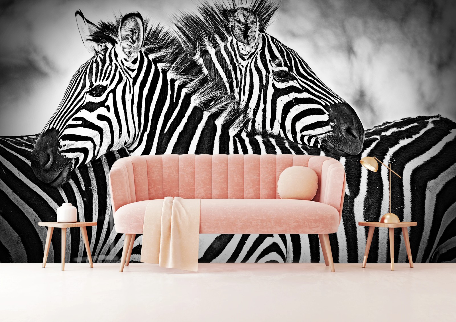 Fototapete Intimes zebra-porträt in schwarzweiß