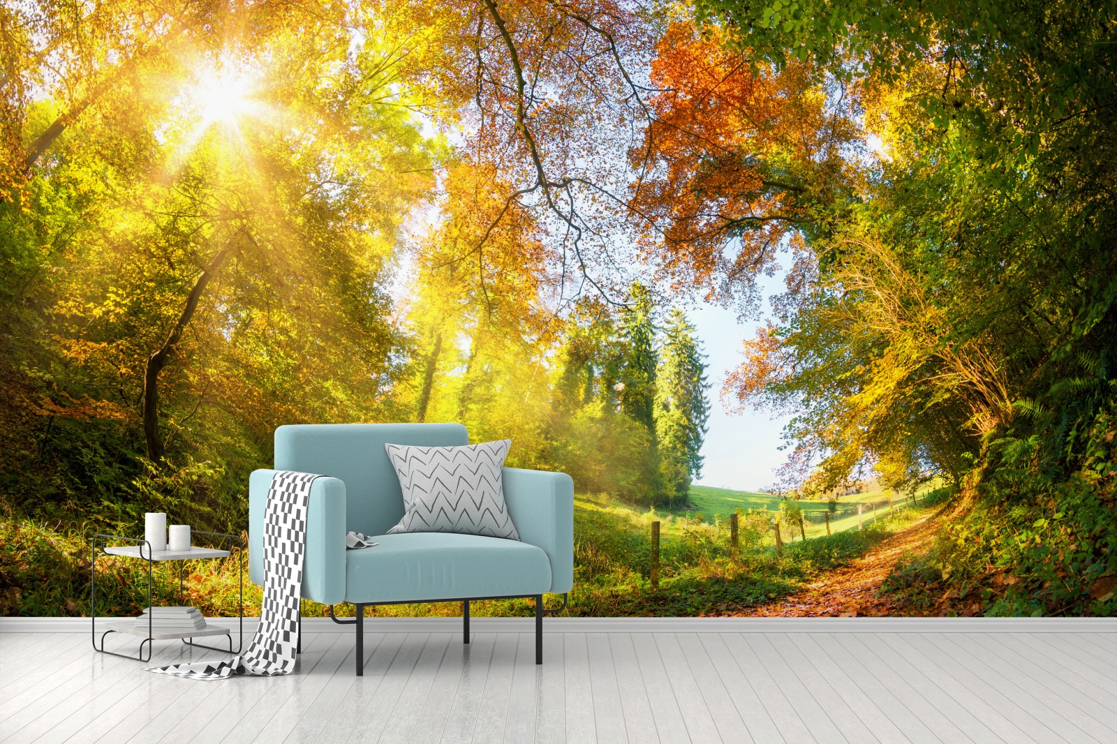 Fototapete Goldener herbstwaldweg