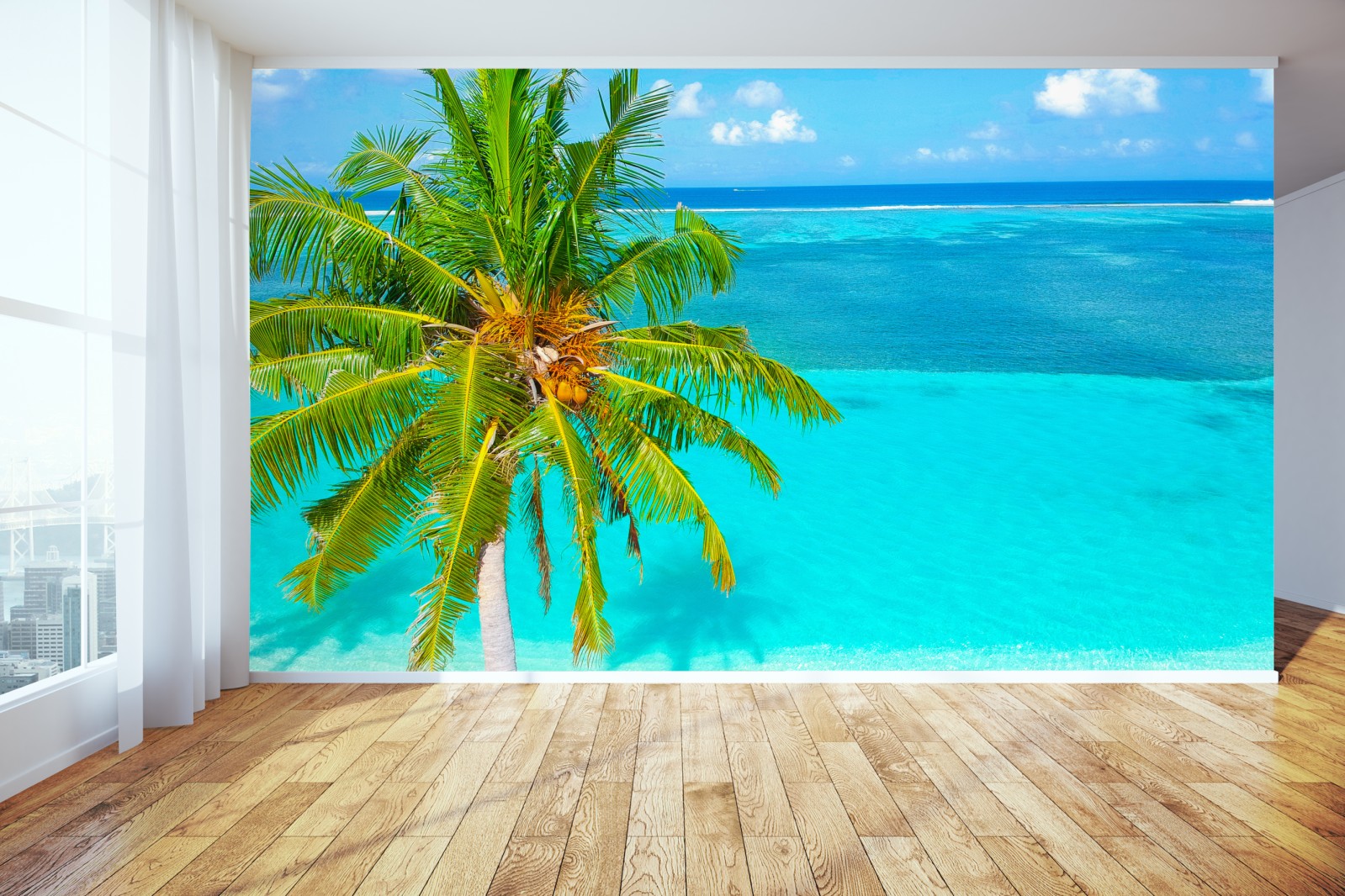 Fototapete tropischer türkisstrand mit palme – Wallnifity®