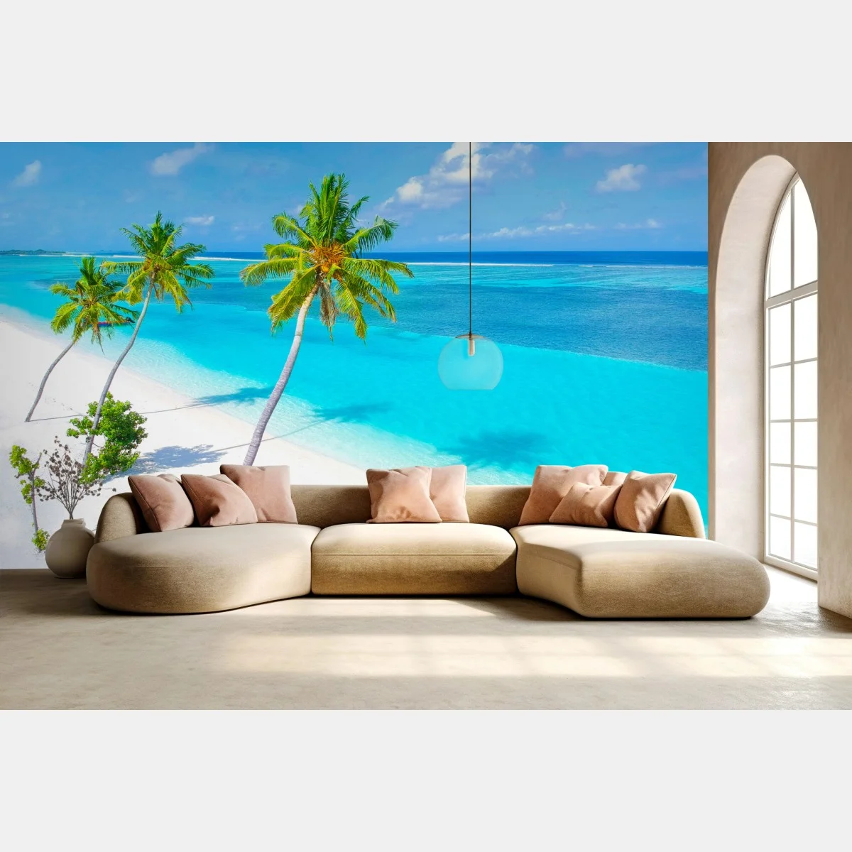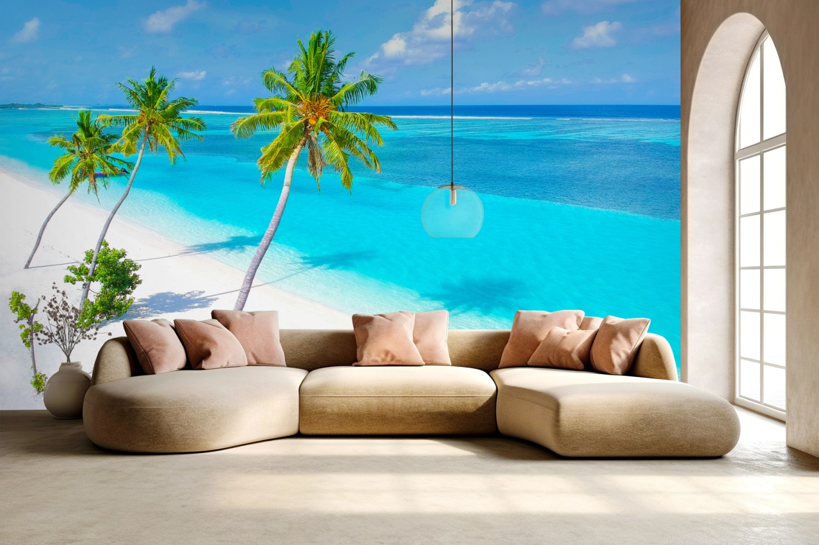 Fototapete Tropischer türkisfarbener strand mit palmen