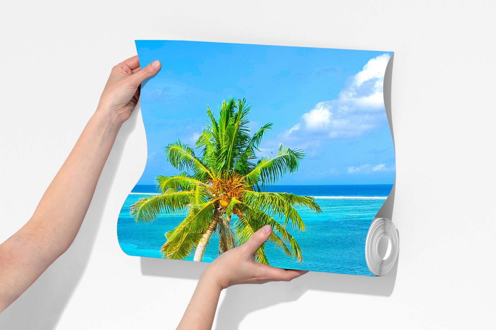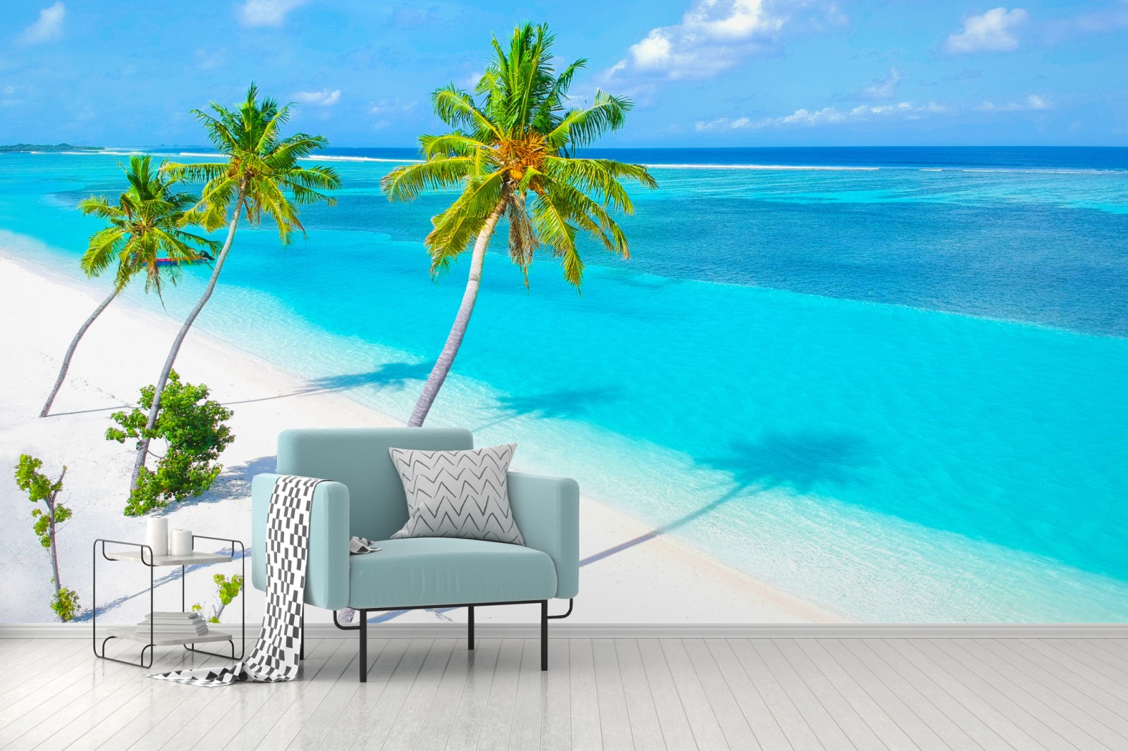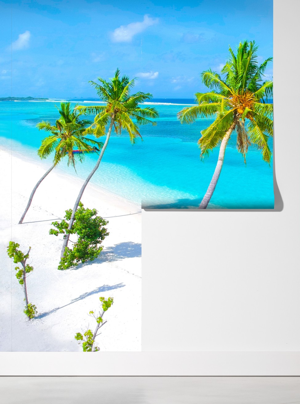 Bringen Sie die ruhige Schönheit eines tropischen Strandes in Ihr Zuhause mit leuchtend türkisfarbenem Wasser, wiegenden Palmen und makellosem weißen Sand.
