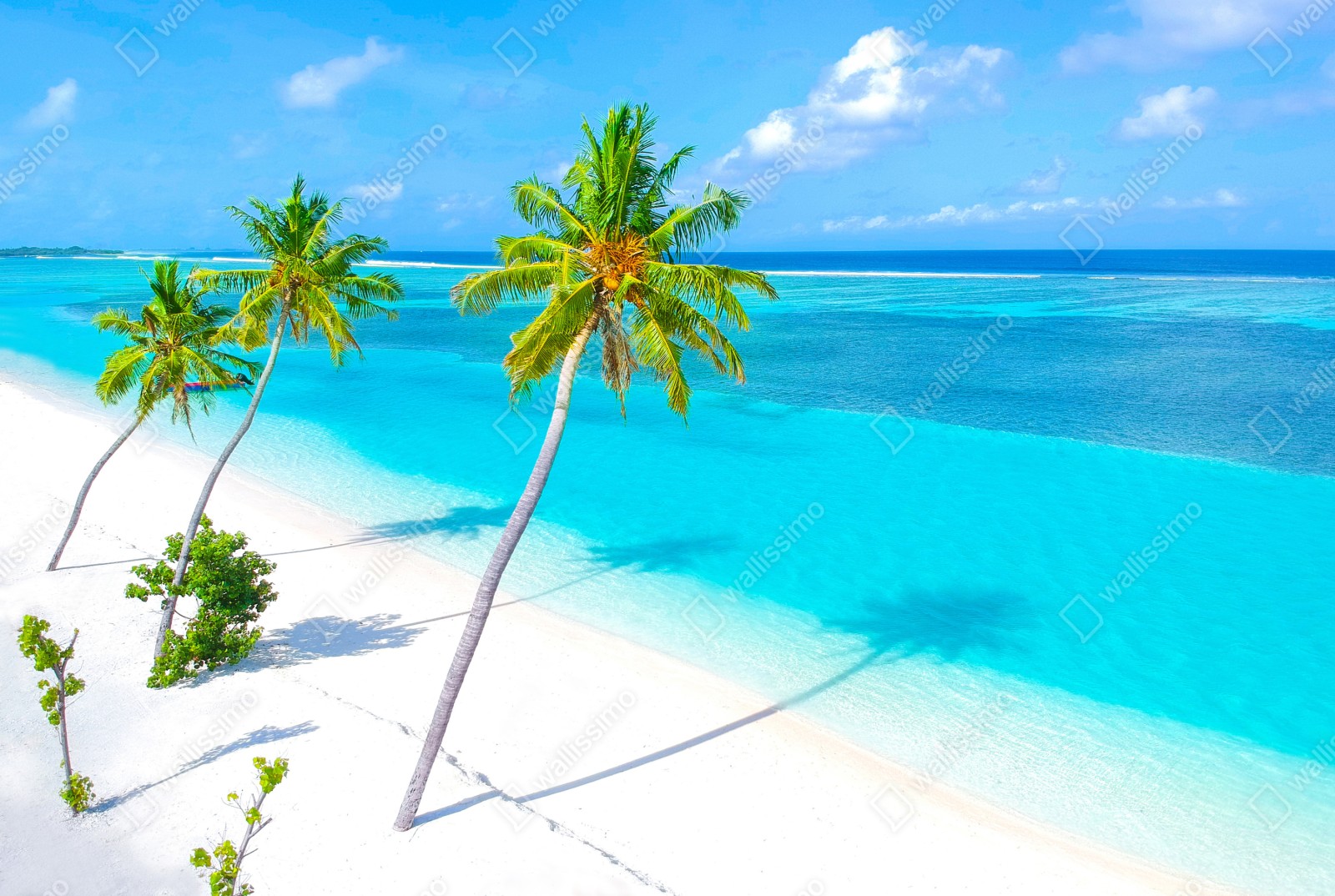 Fototapete tropischer türkisfarbener strand mit palmen – Wallnifity®