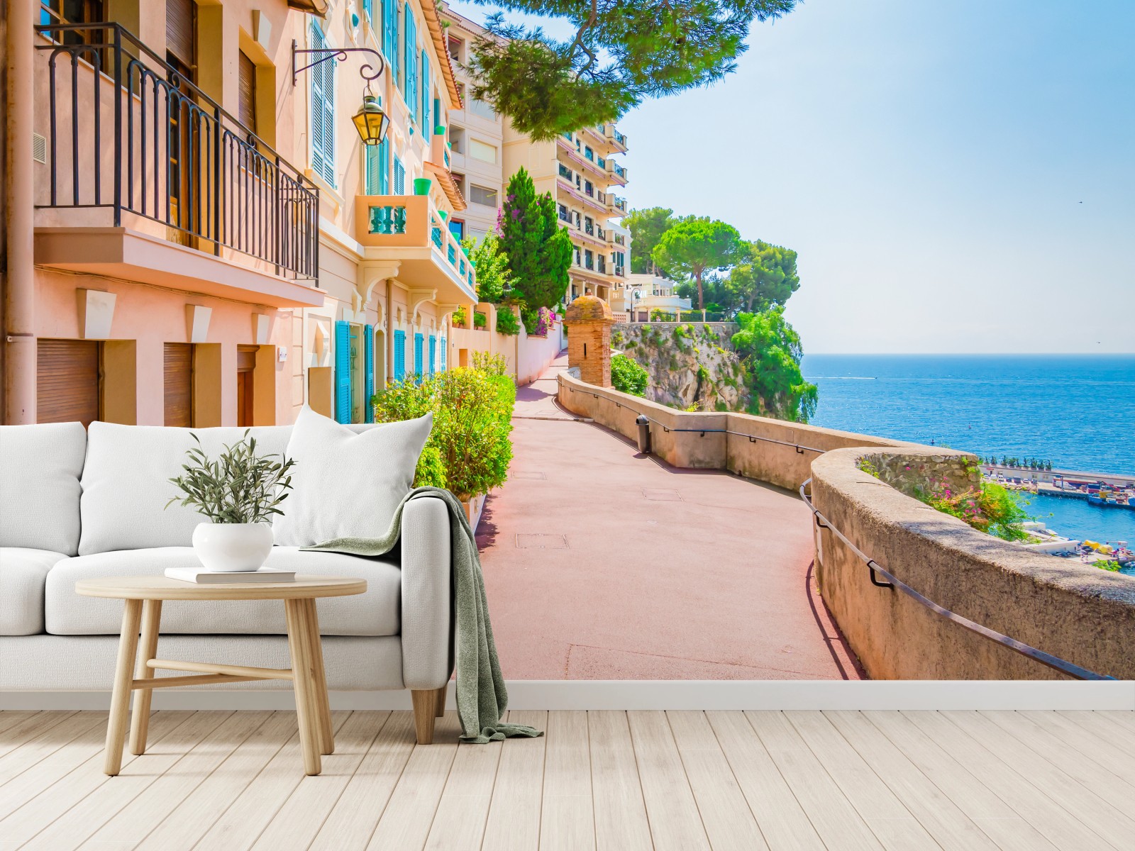 Fototapete Mediterrane promenade mit pastellfarbenen häusern