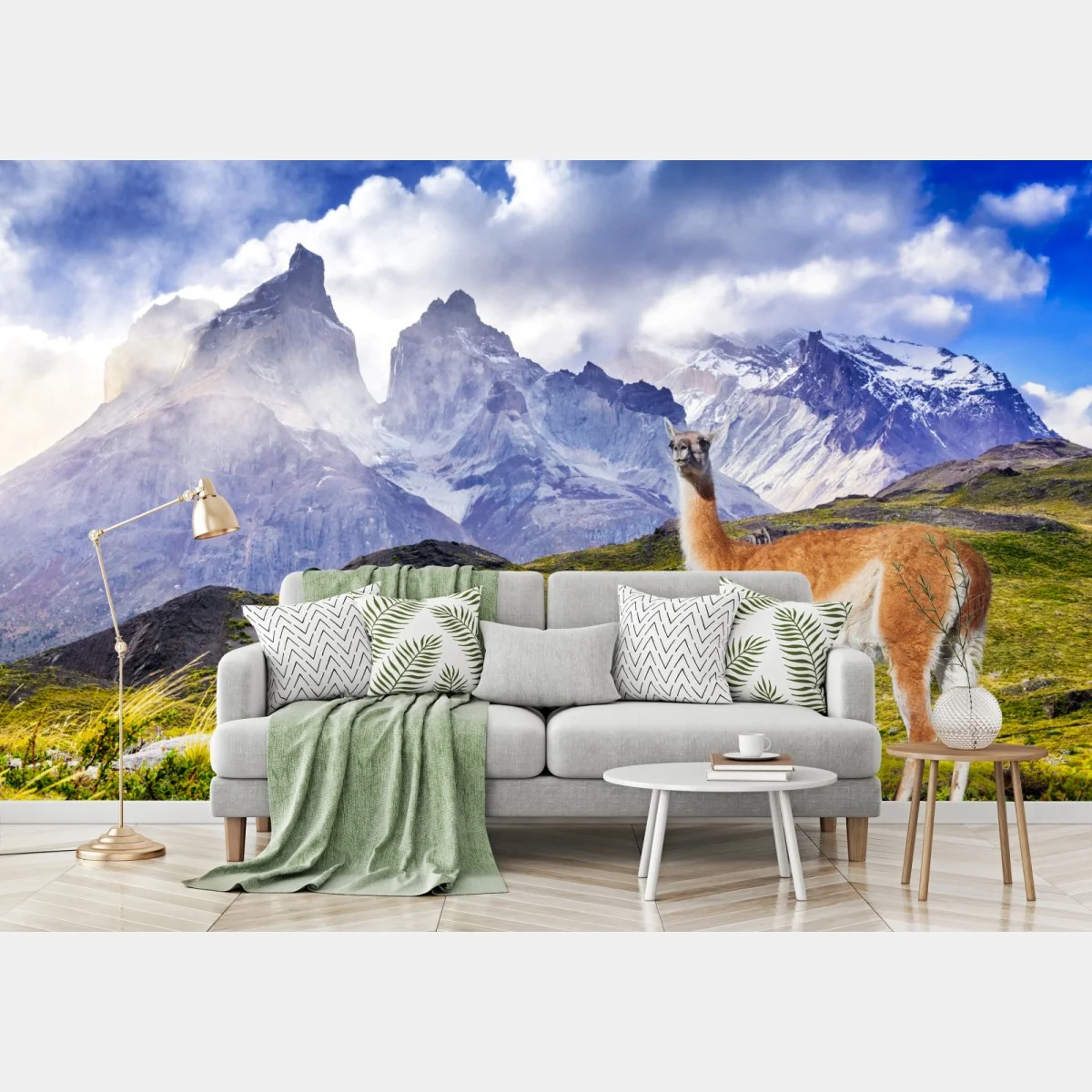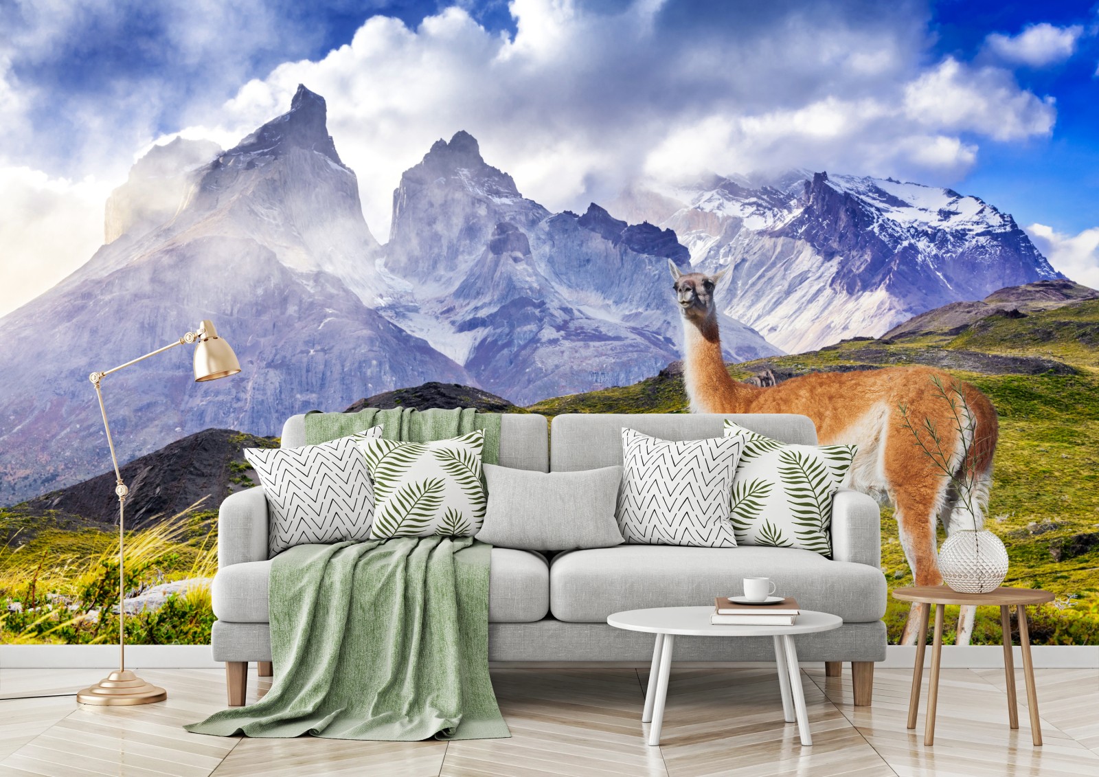 Fototapete Torres del Paine Patagonia landschaft mit guanako