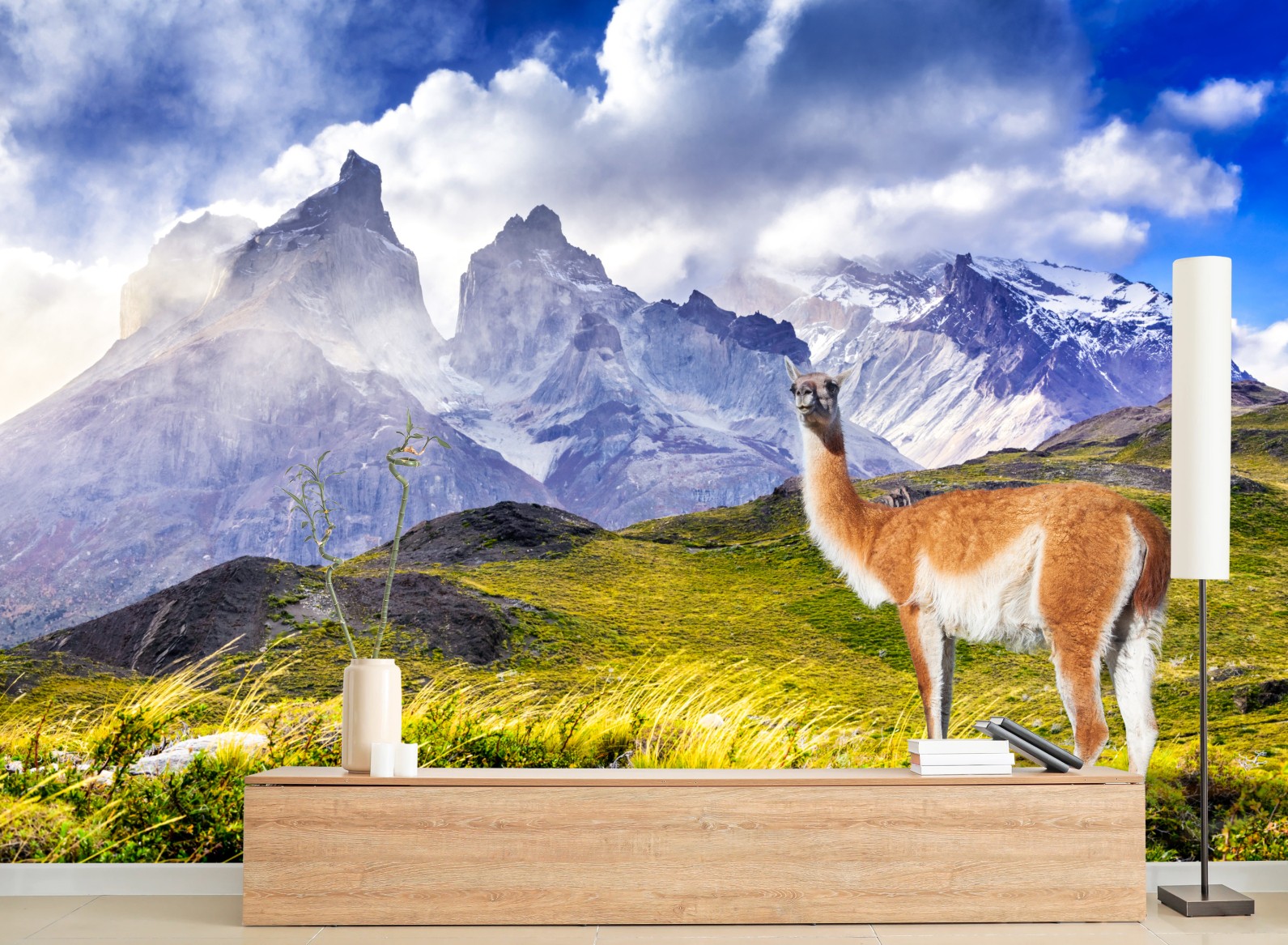 Fototapete Torres del Paine Patagonia landschaft mit guanako