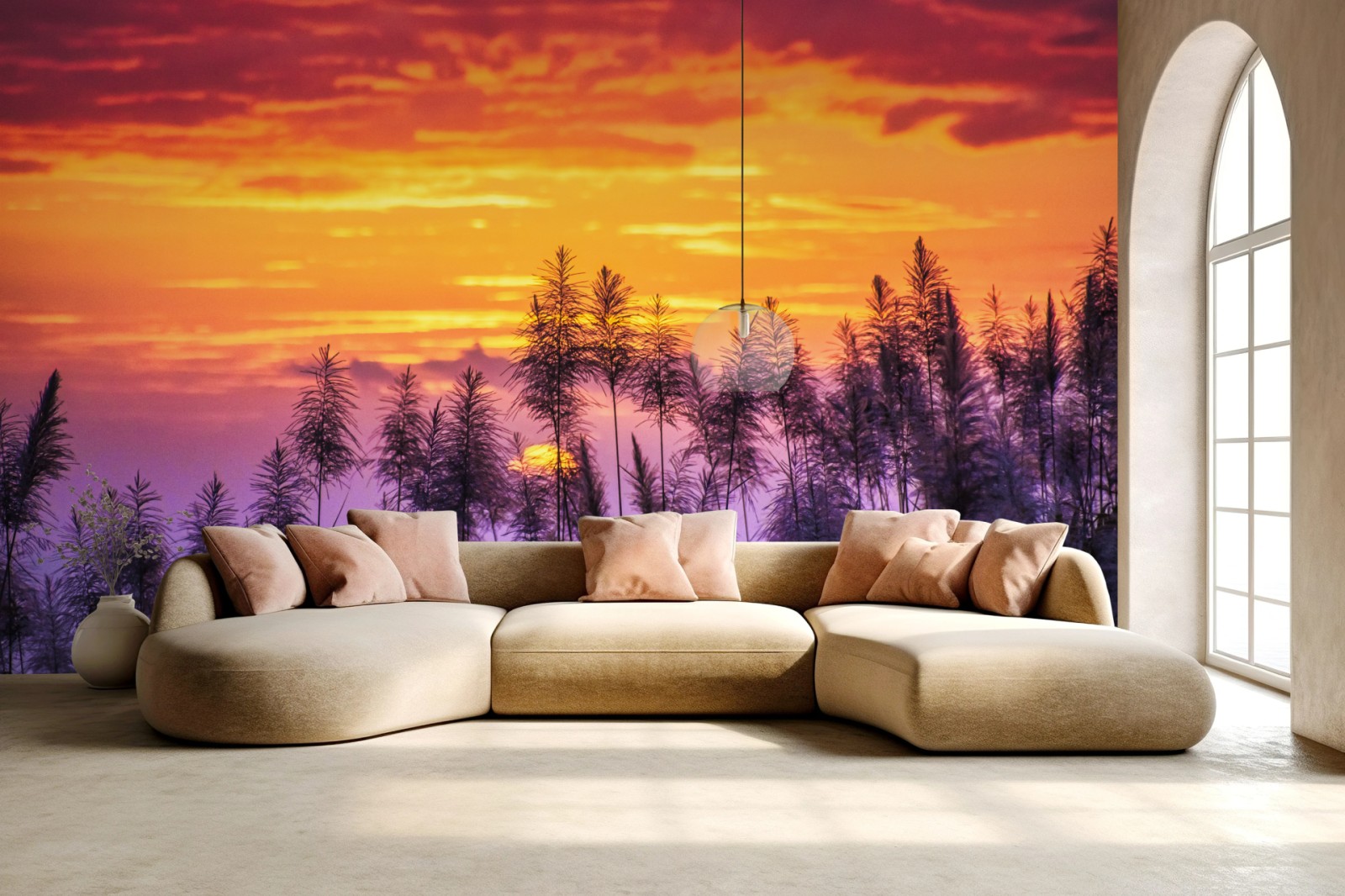 Fototapete Goldener sonnenuntergang über wildgräsern
