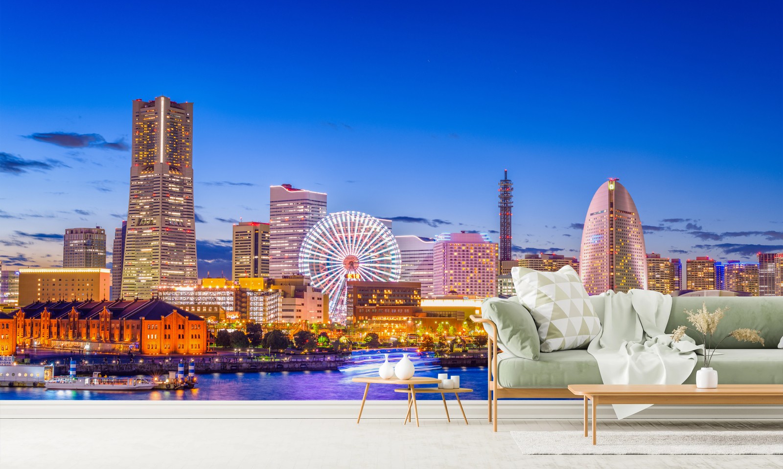 Fototapete Yokohama skyline bei dämmerung