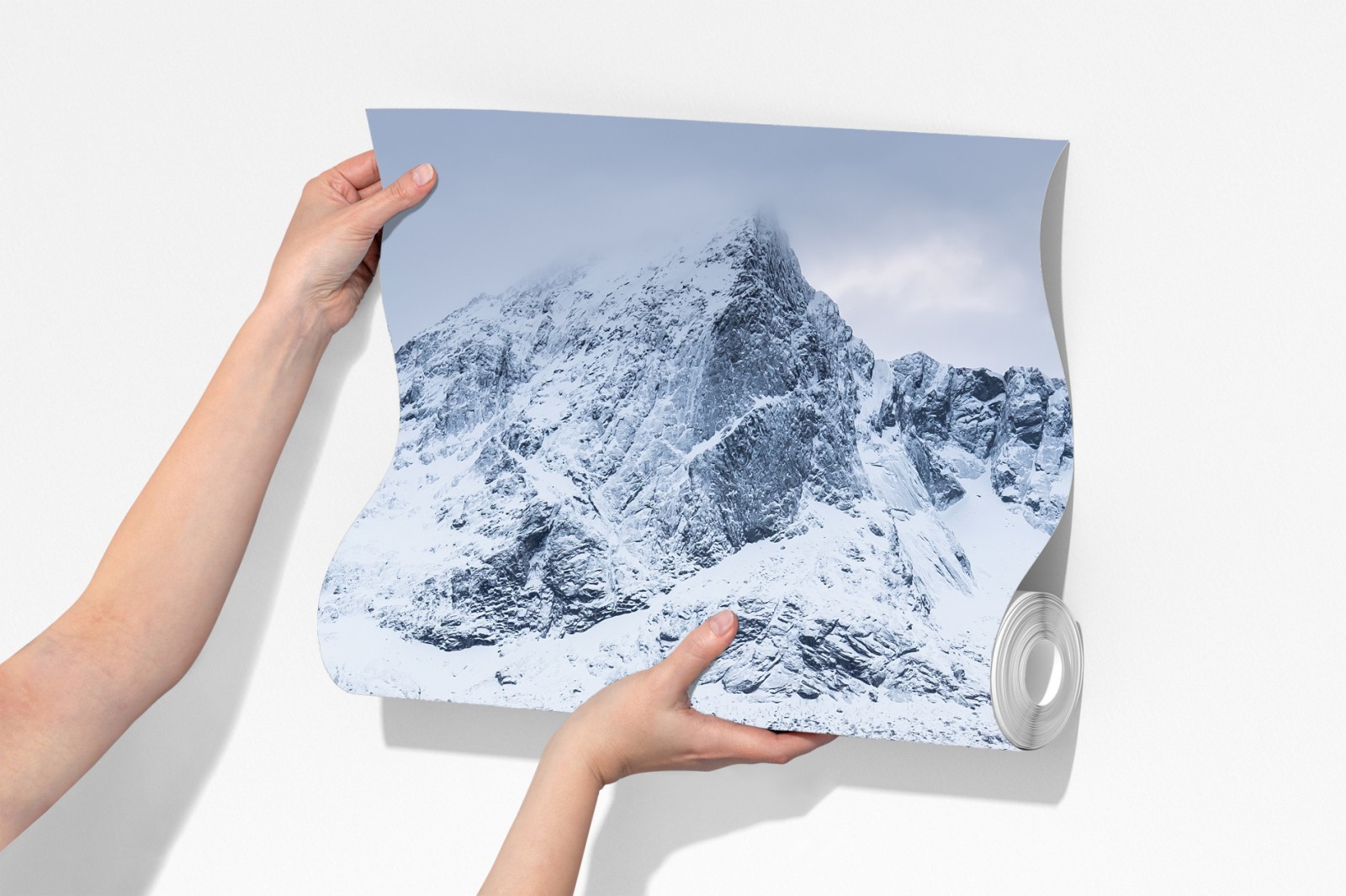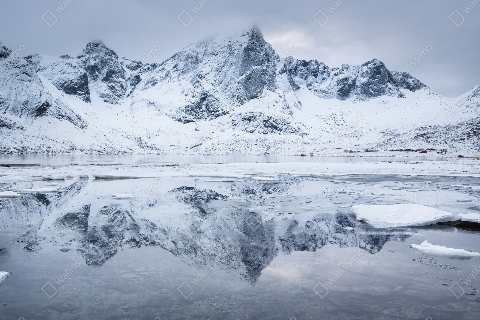 Fototapete verschneite bergspiegelung in Norwegen – Wallnifity®
