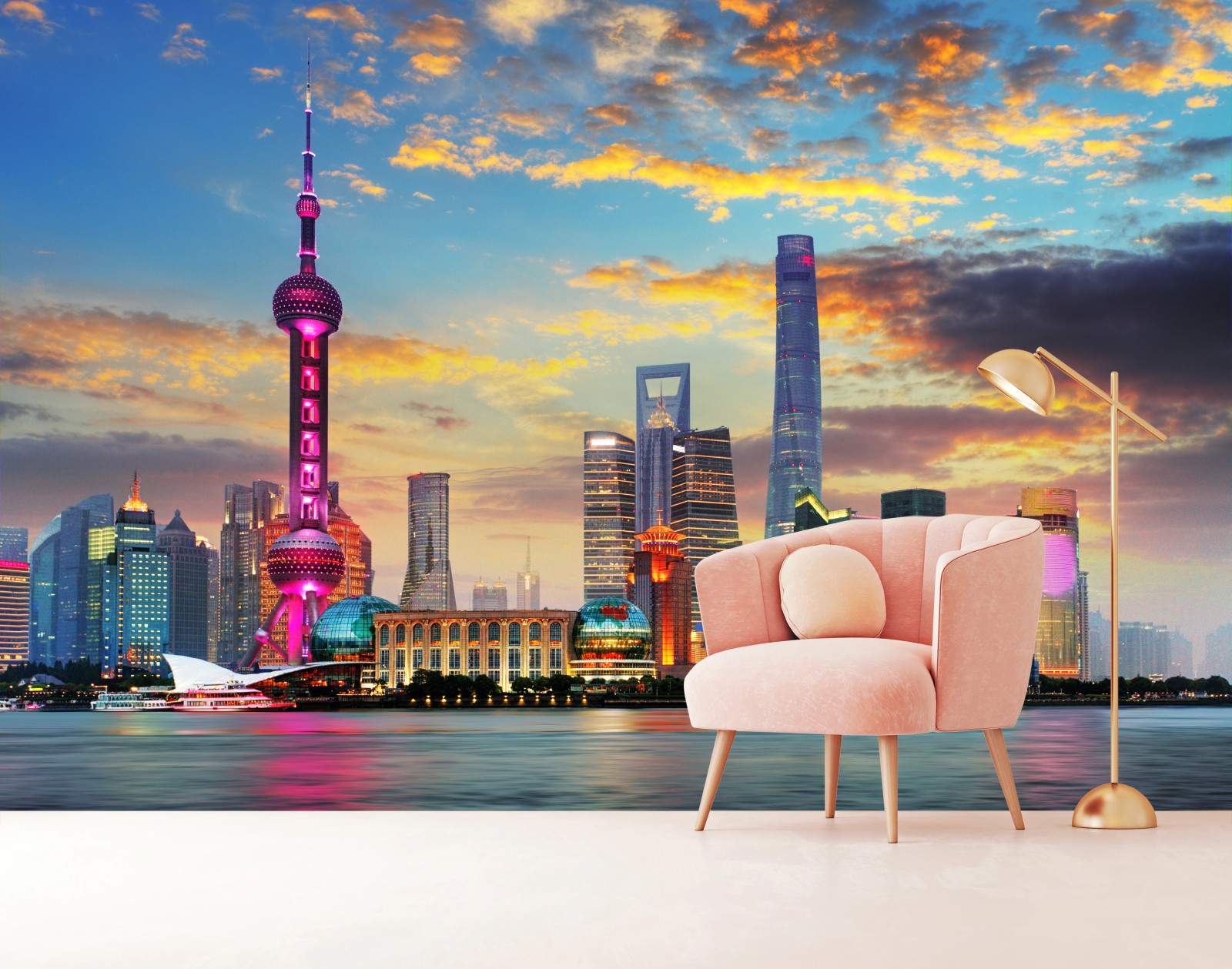 Fototapete Shanghai skyline bei sonnenuntergang