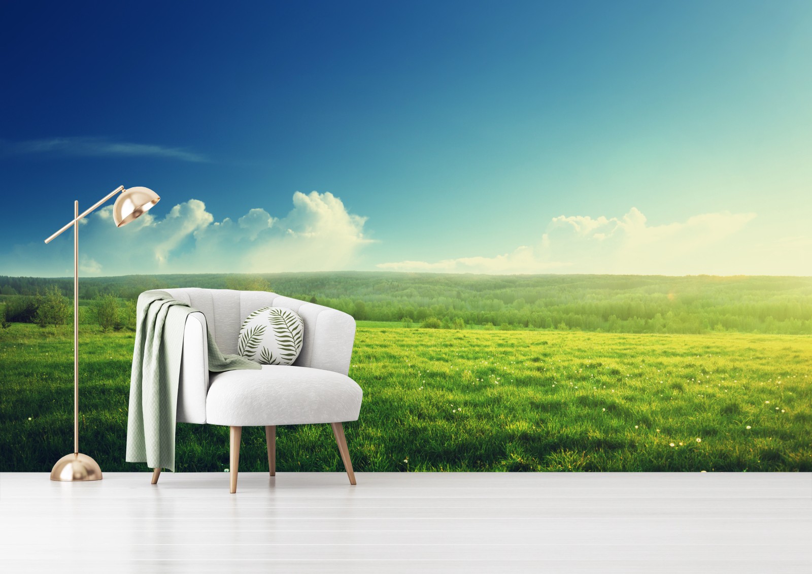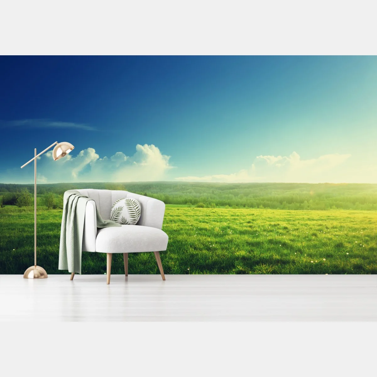 Fototapete Sonnige frühlingswiese im abendlicht