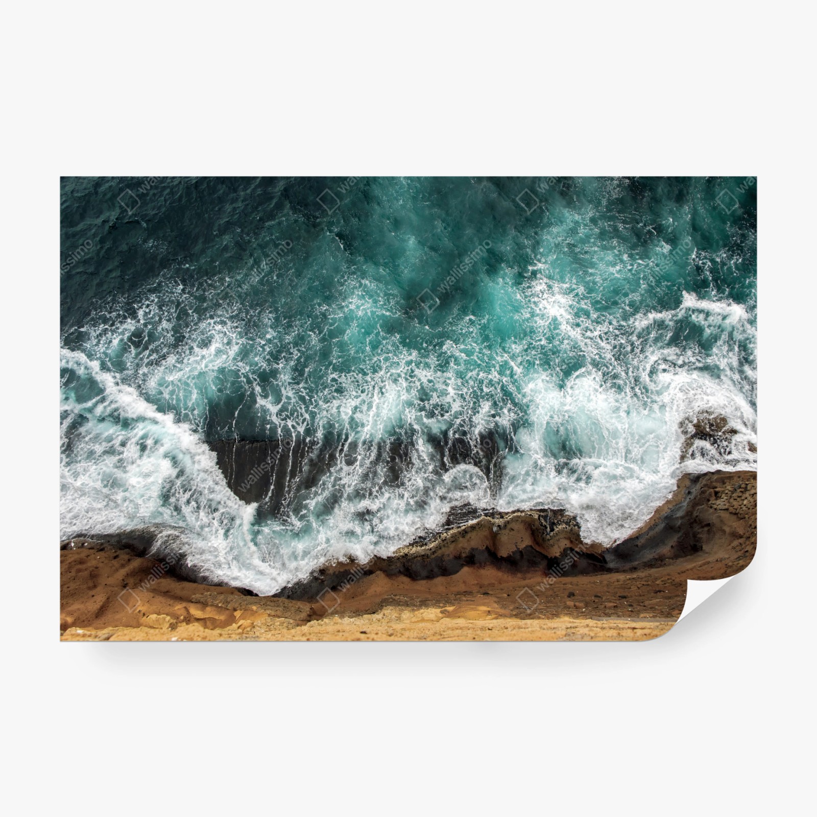 Fototapete Türkise küste aus der vogelperspektive mit brandenden wellen