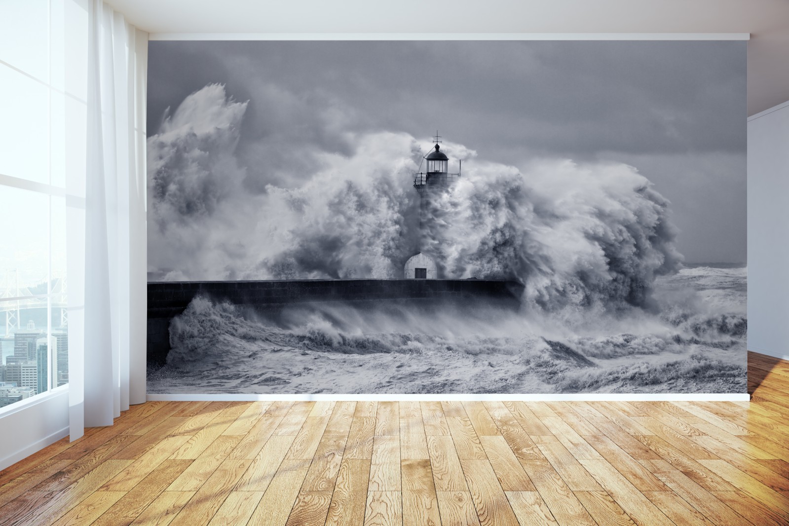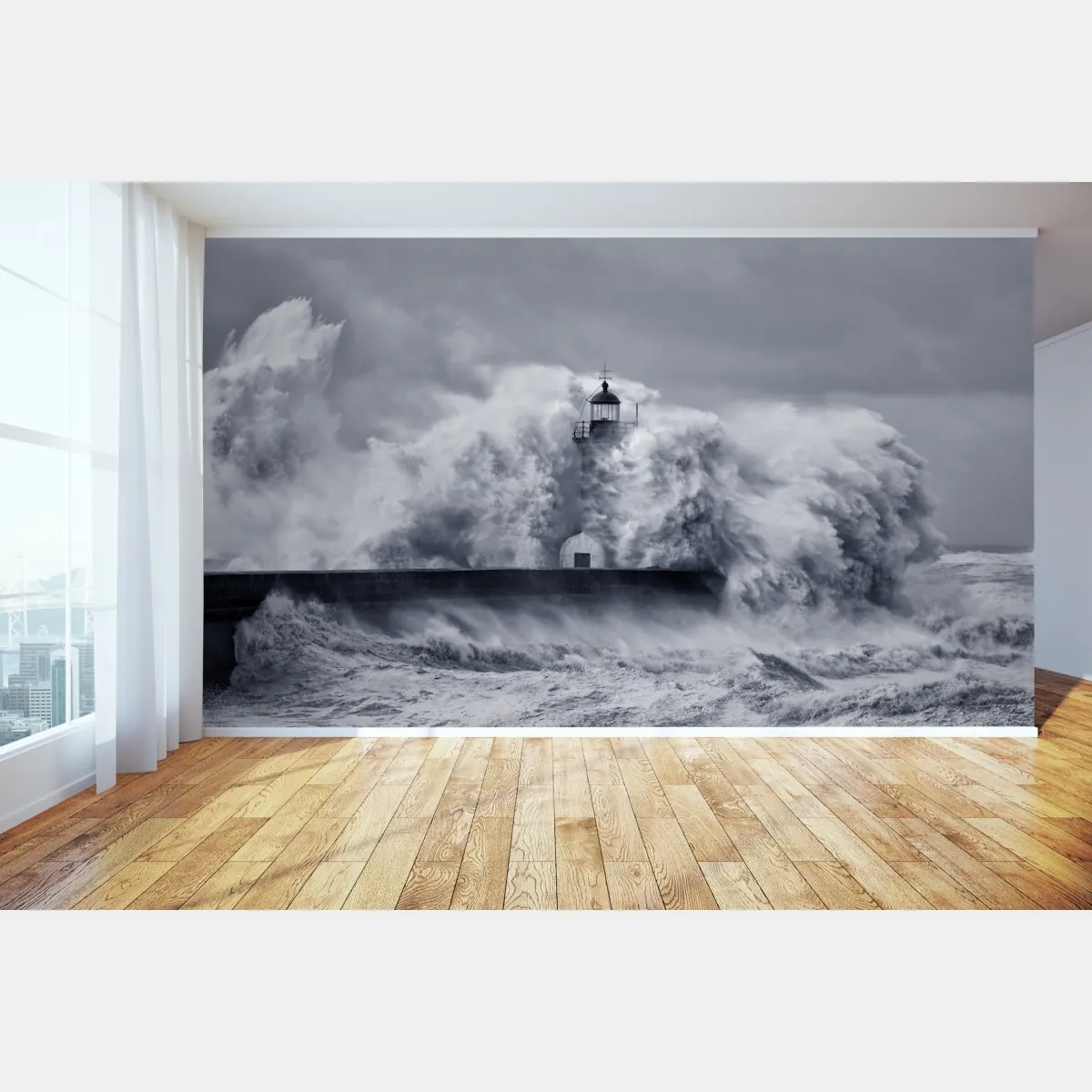 Fototapete leuchtturm von mächtigen wellen umgeben