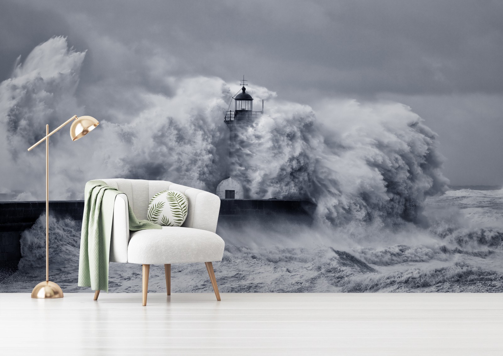 Fototapete Leuchtturm von mächtigen wellen umgeben