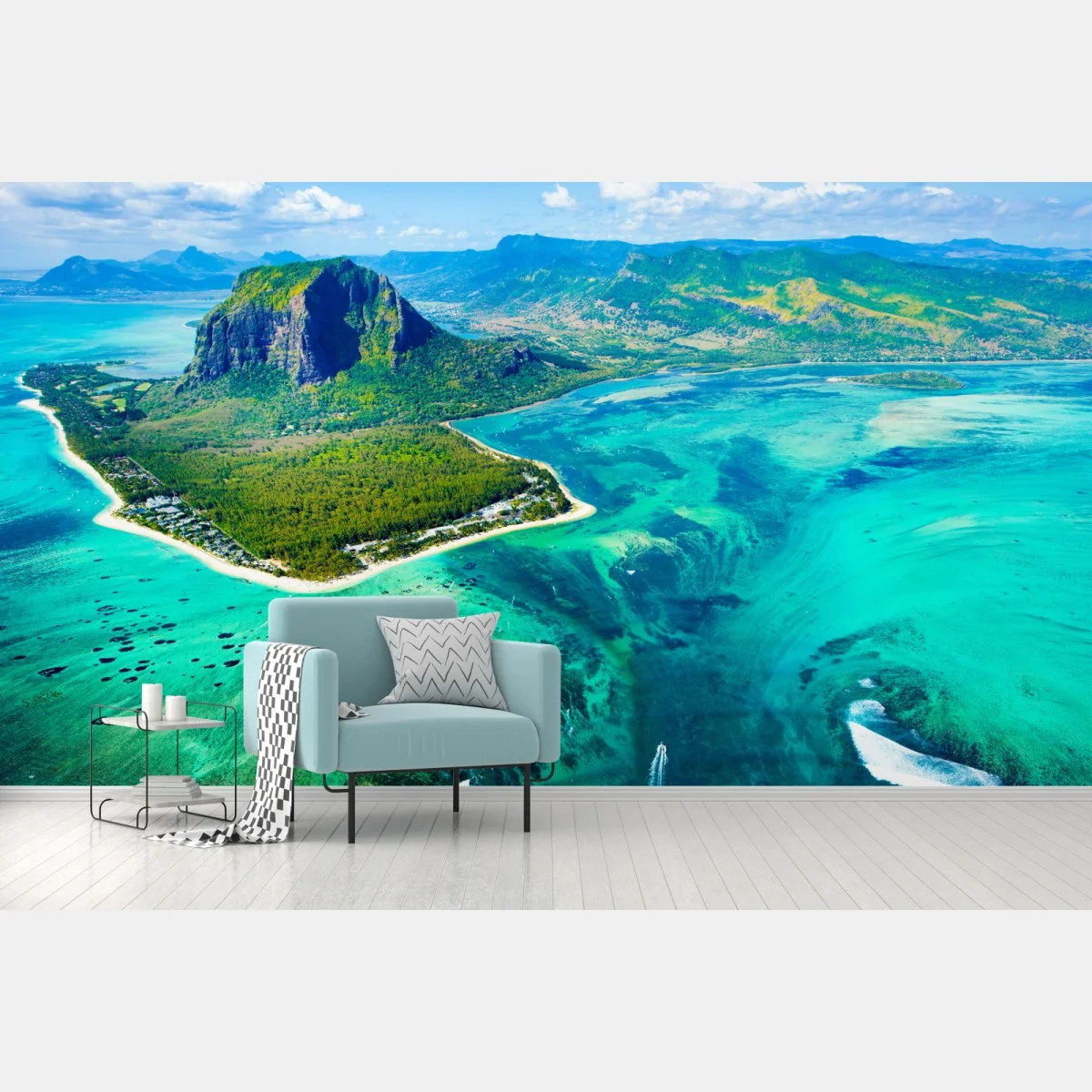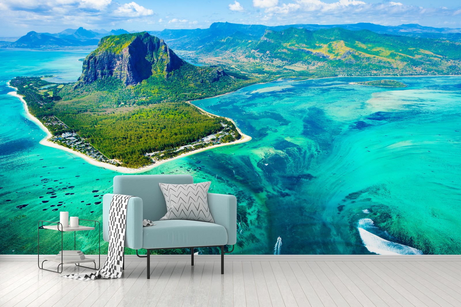 Fototapete Türkisfarbene lagune aus der luft, Mauritius