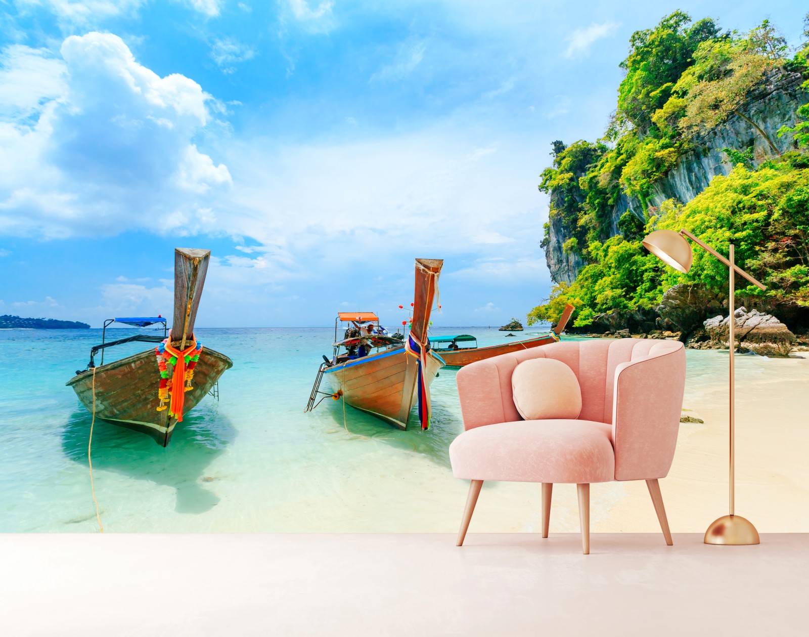 Fototapete Longtail-boote am türkisfarbenen strand von Phuket