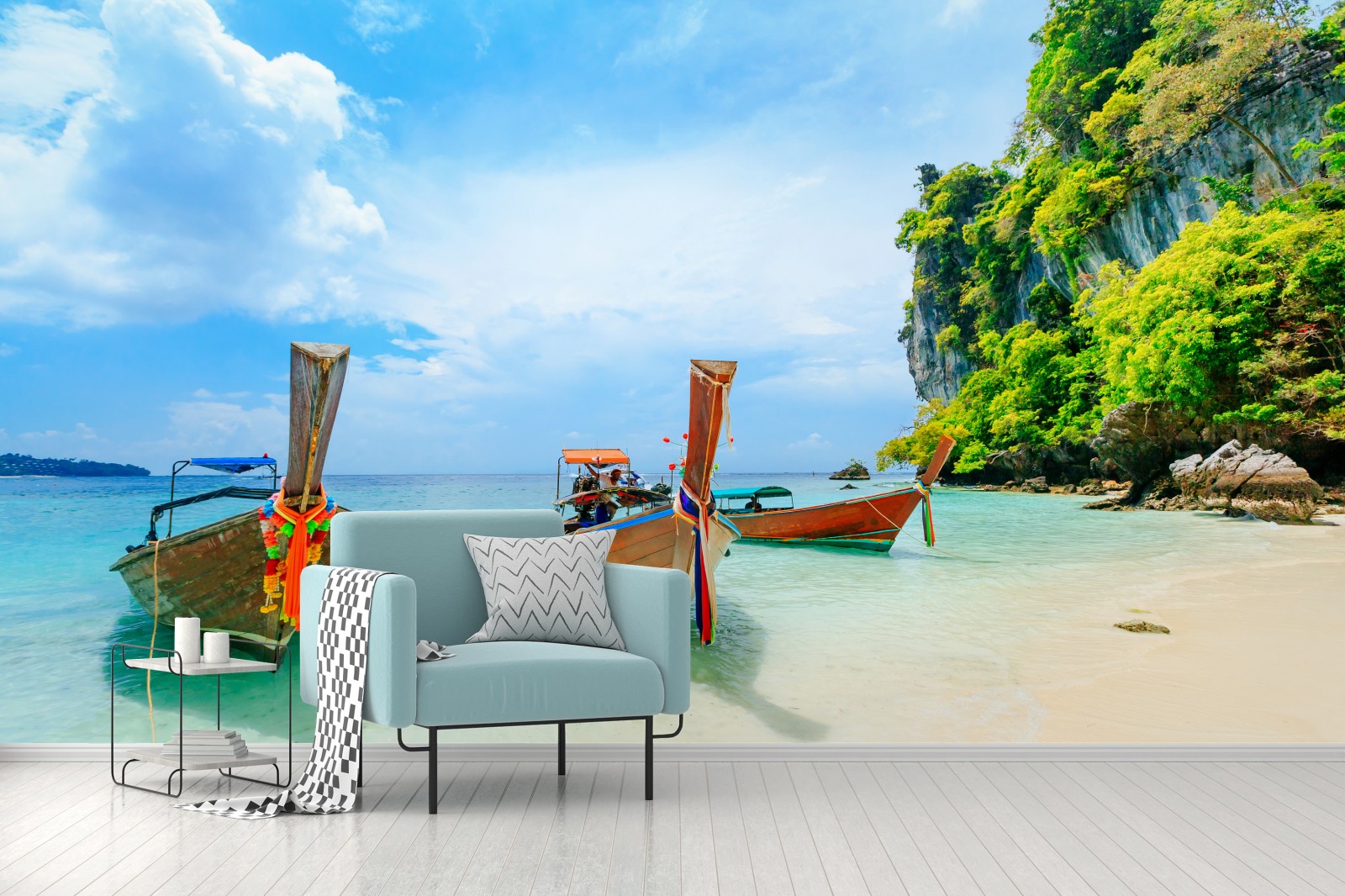 Fototapete Longtail-boote am türkisfarbenen strand von Phuket