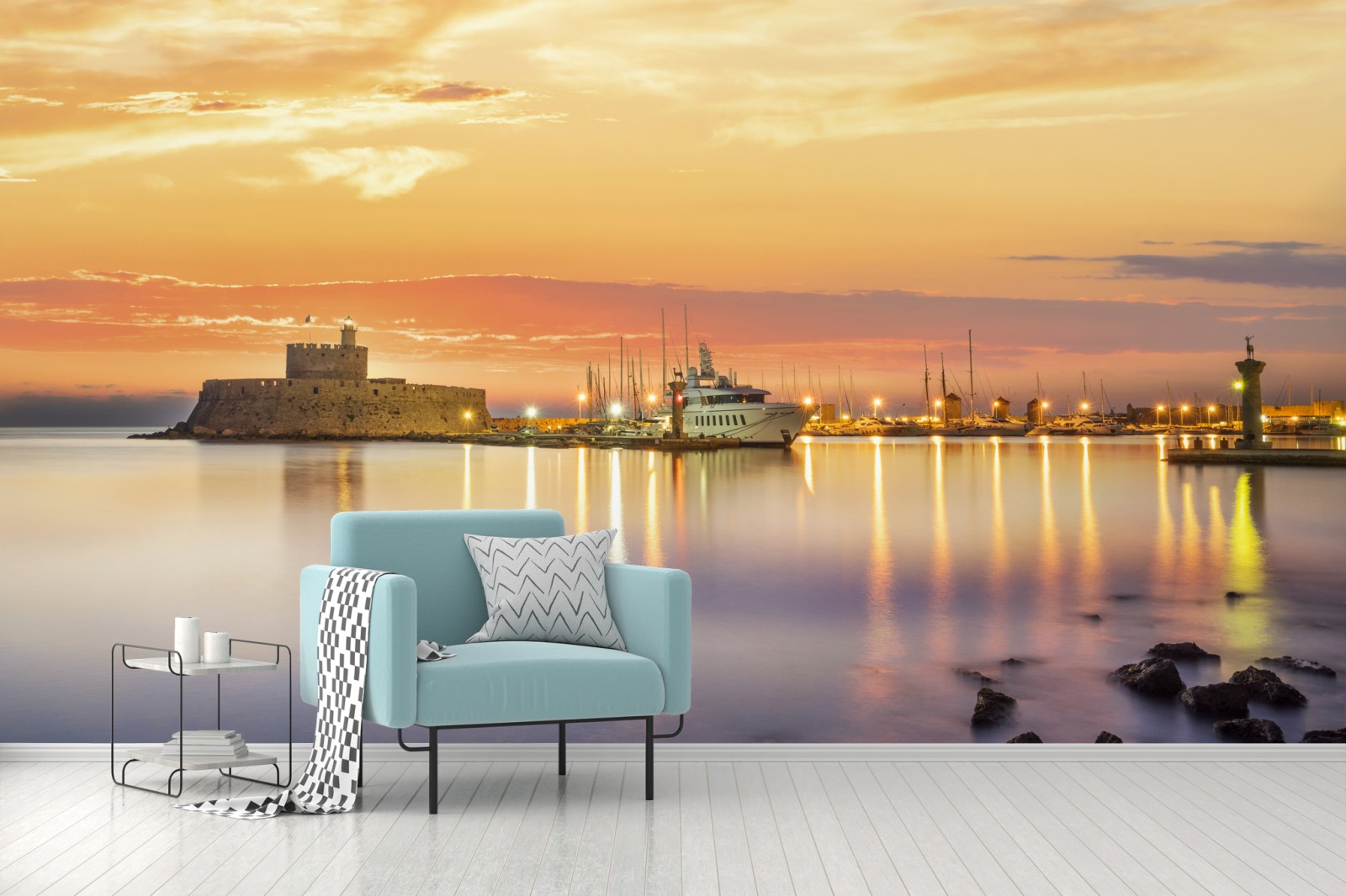 Fototapete festung Agios Nikolaos im Hafen Mandraki, Rhodos – Wallnifity®