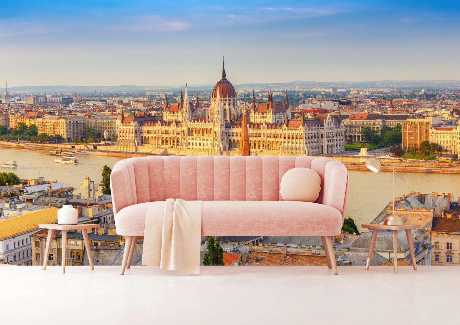 Fototapete Budapest skyline mit dem ungarischen Parlament am Donauufer