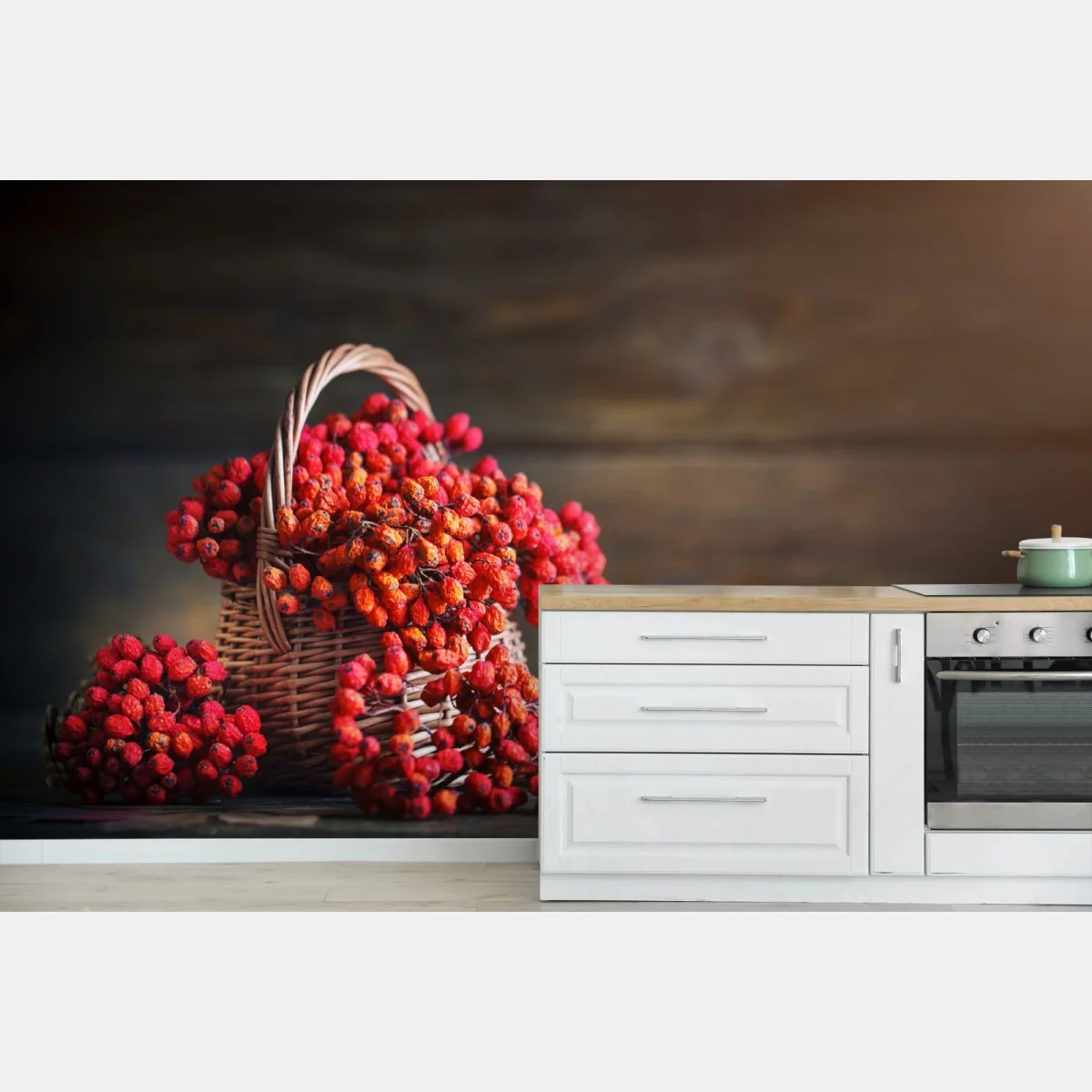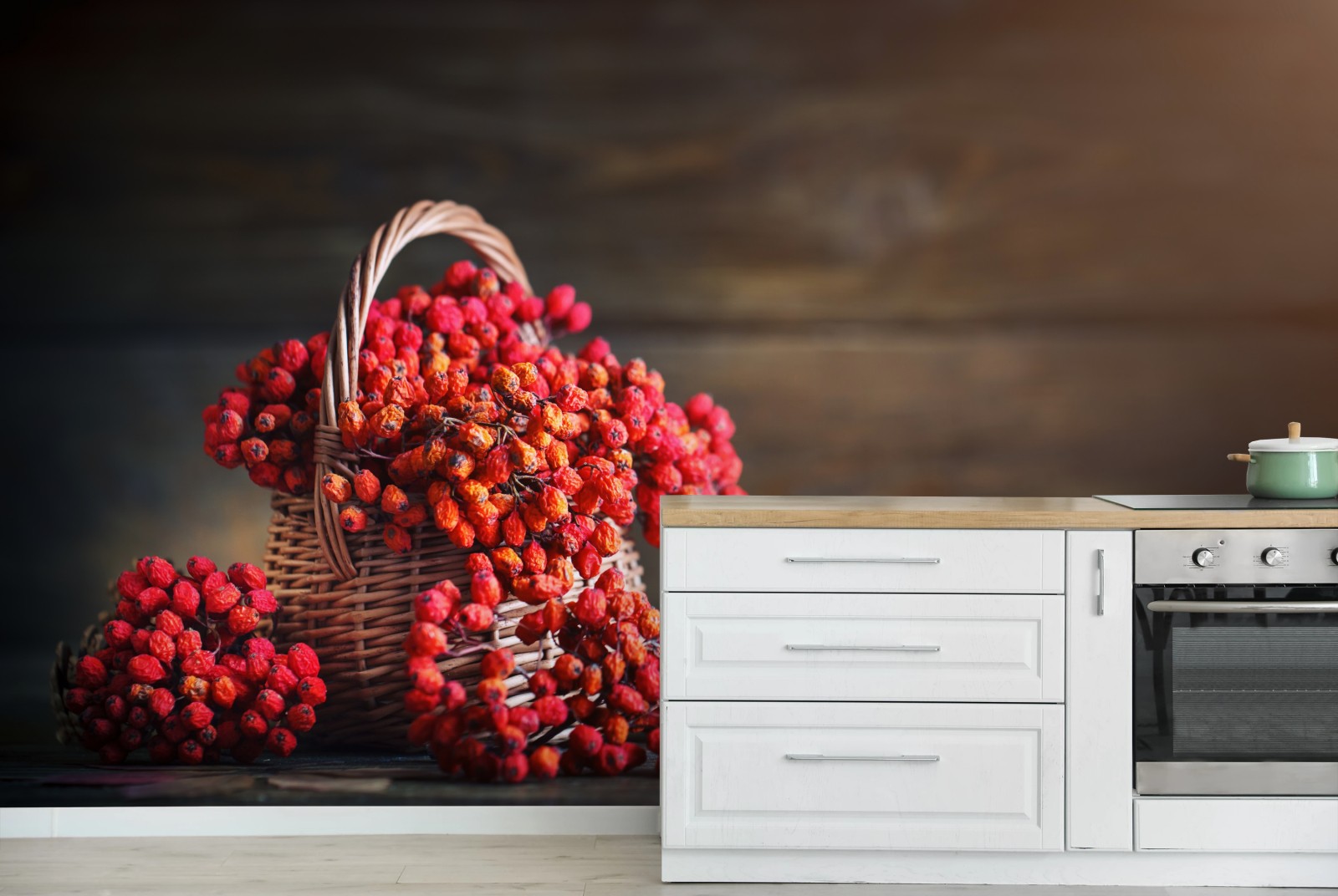 Fototapete Herbstliche vogelbeeren im weidenkorb