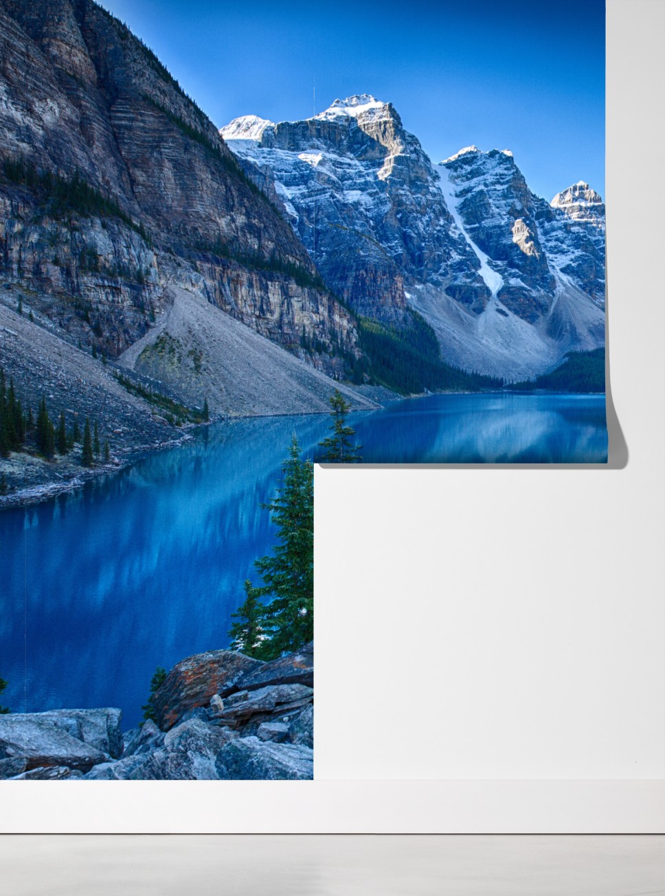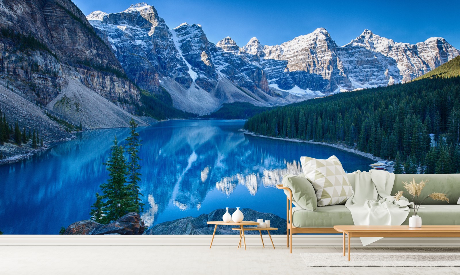 Bringen Sie die beruhigende Schönheit alpiner Gipfel und spiegelnder blauer Gewässer in Ihren Raum.