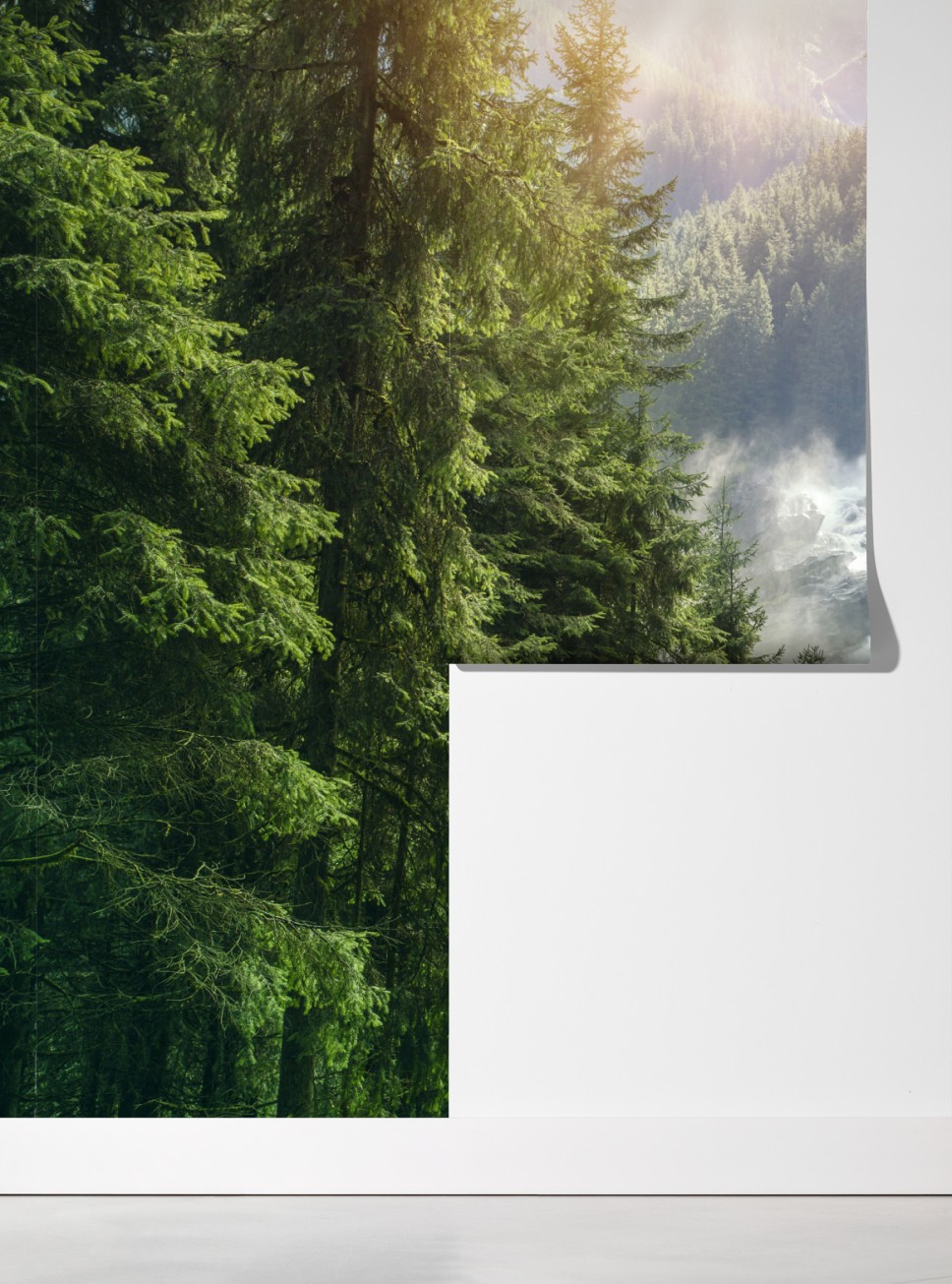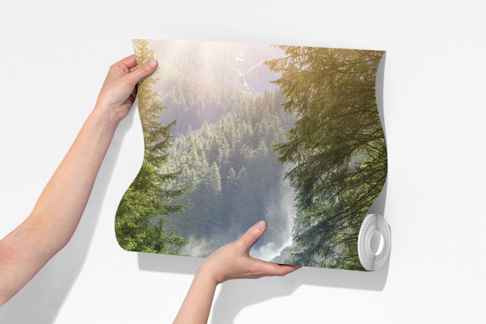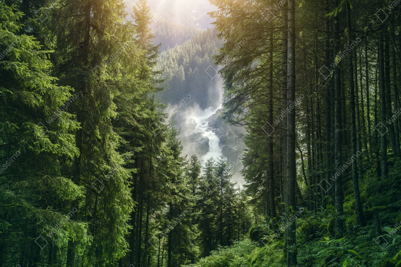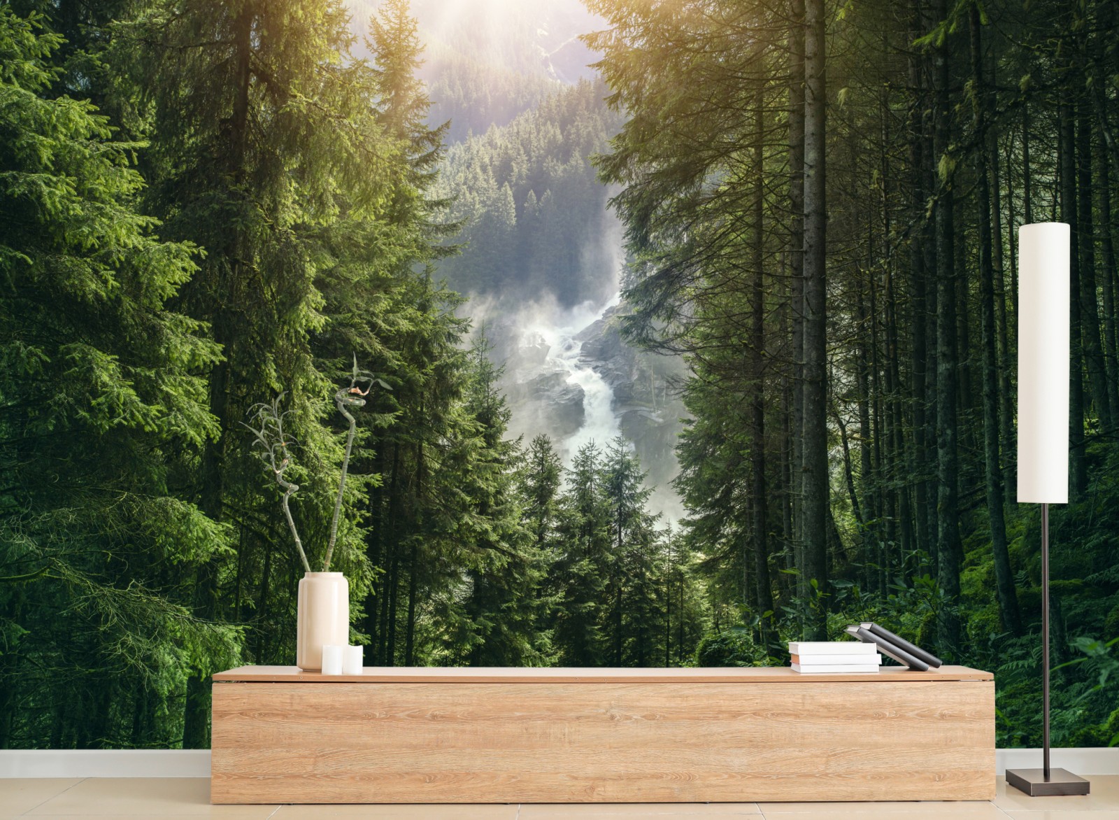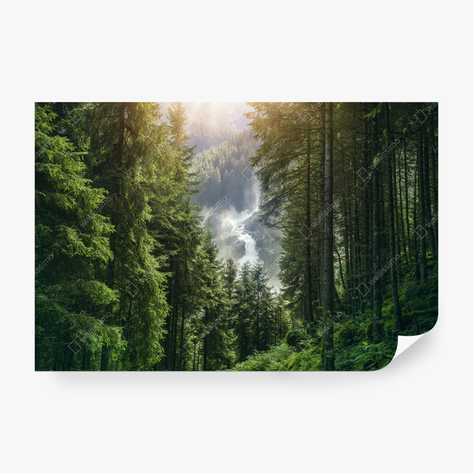 Fototapete Krimml wasserfall im üppigen alpinen wald