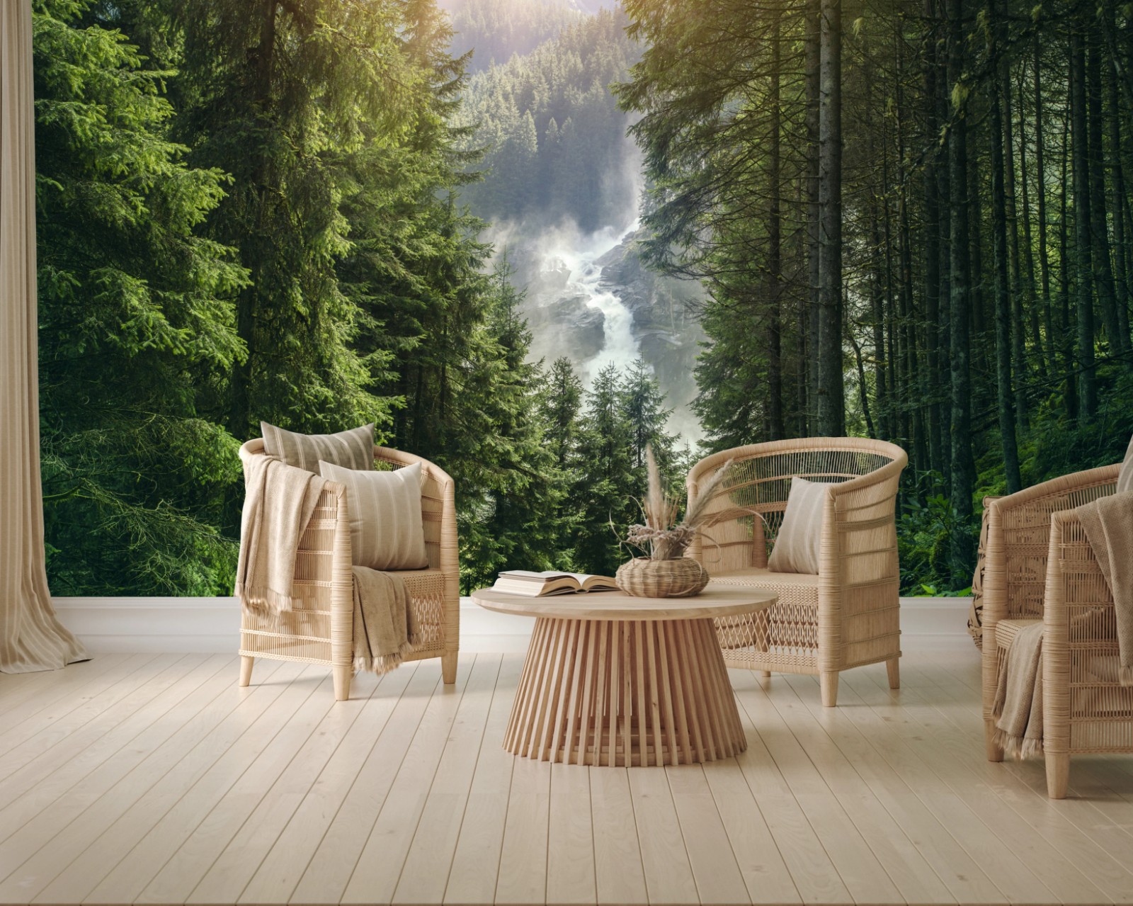 Fototapete Krimml wasserfall im üppigen alpinen wald