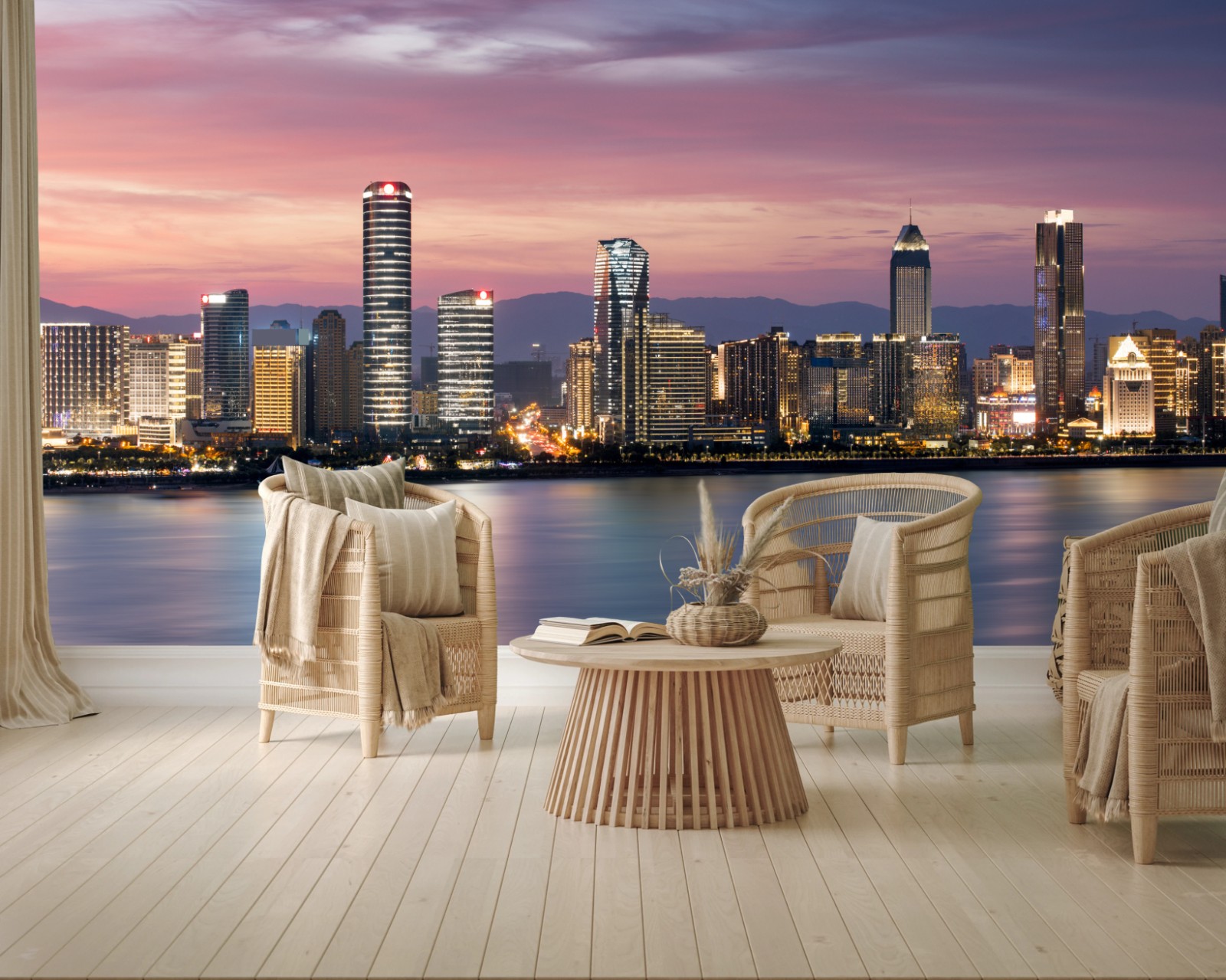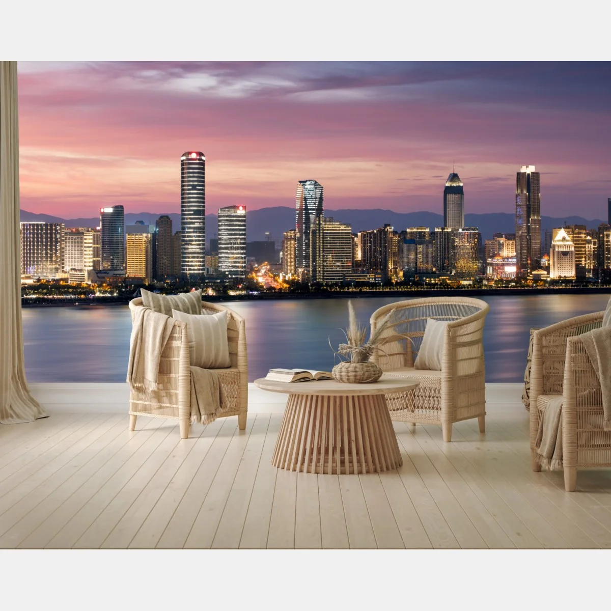 Fototapete Ruhige stadtskyline bei dämmerung