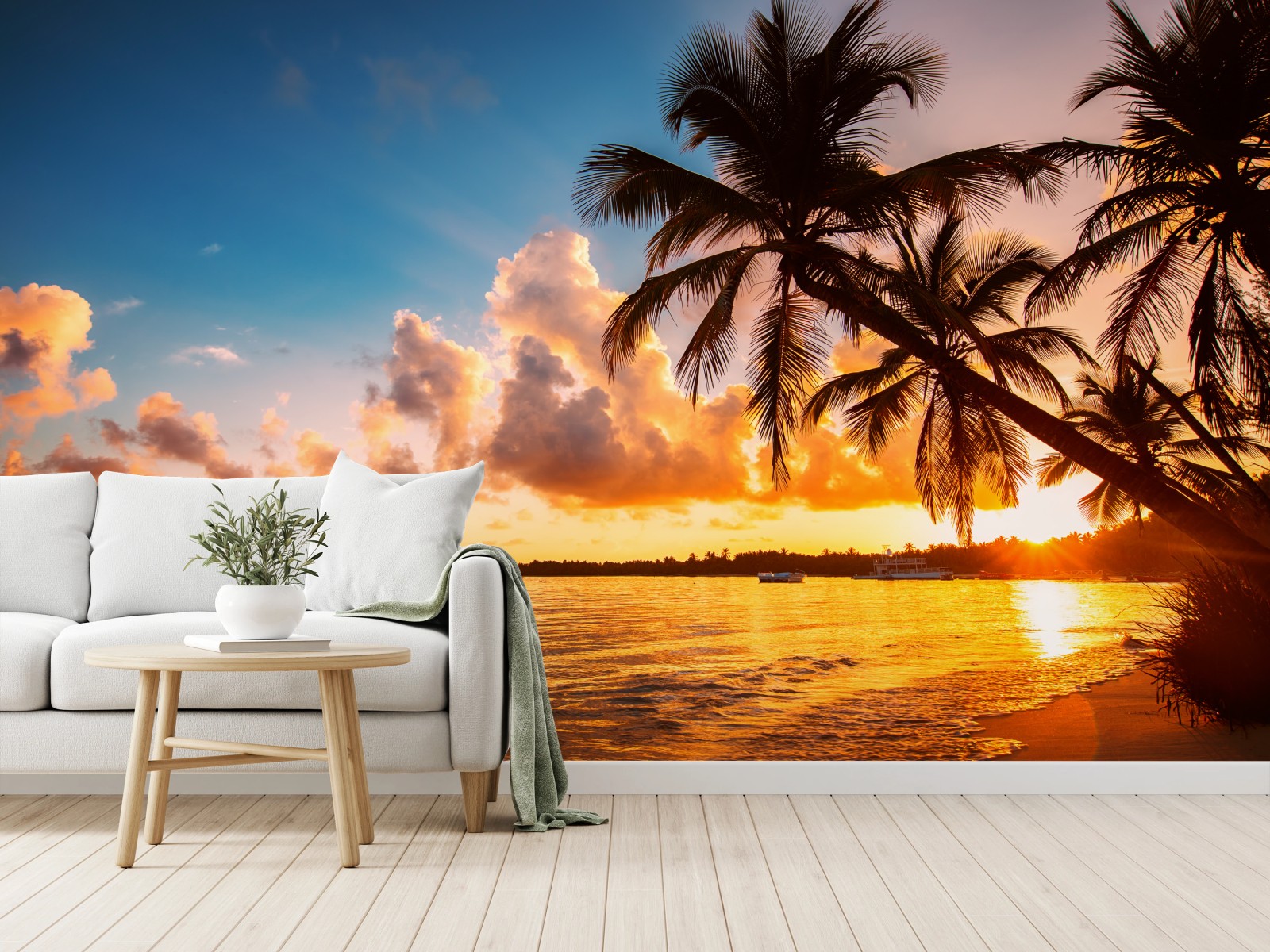 Fototapete Tropischer sonnenuntergang mit palmensilhouetten, Dominikanische Republik