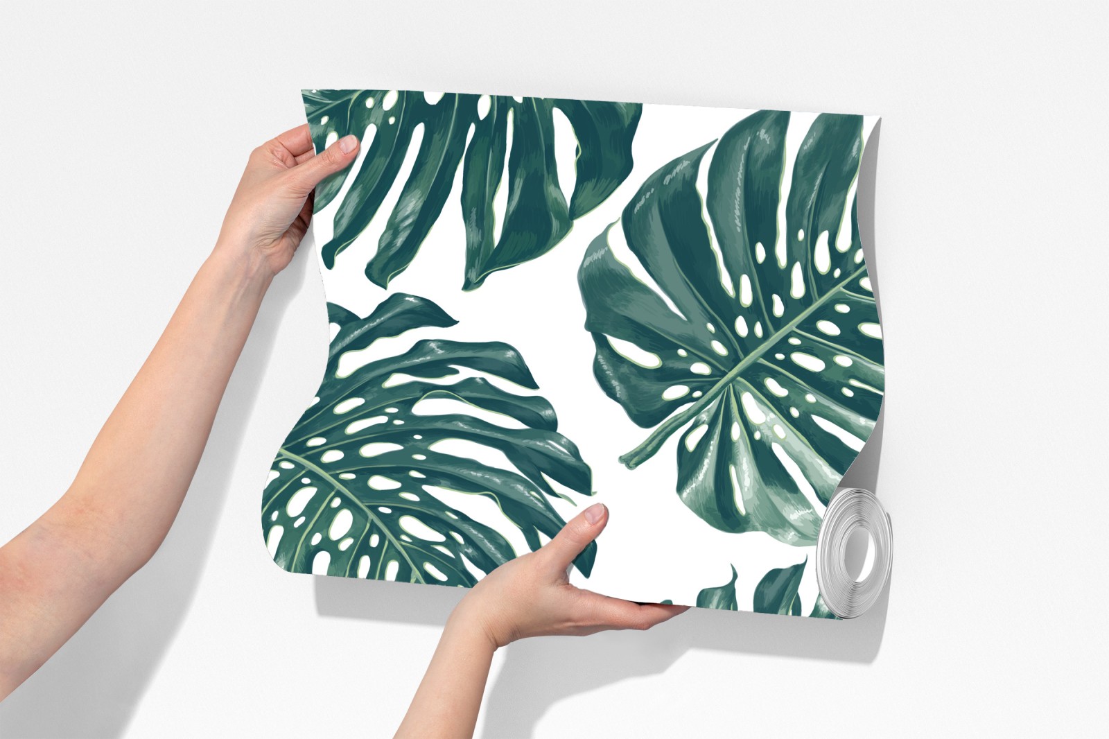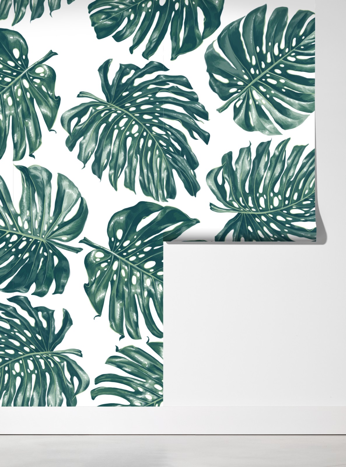 Prächtige Monstera-Blätter in Aquarell schaffen ein beruhigendes botanisches Muster, das tropisches Grün in jeden Raum bringt.