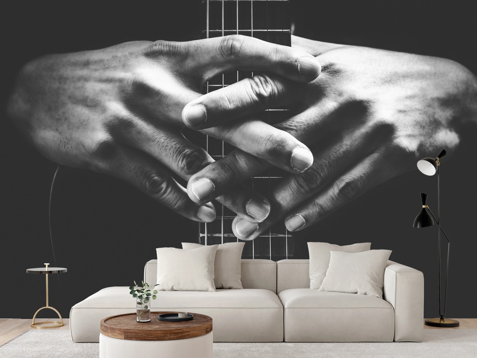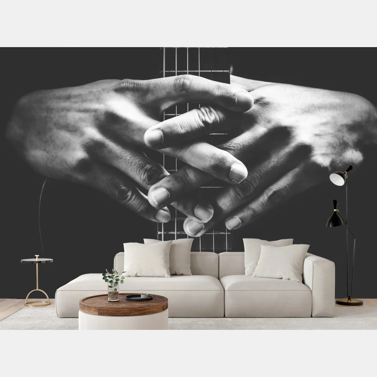Fototapete Verschränkte hände auf gitarrensaiten