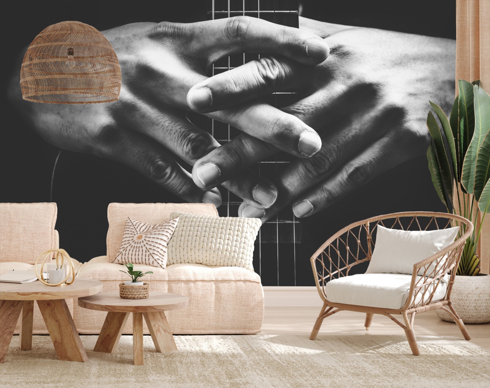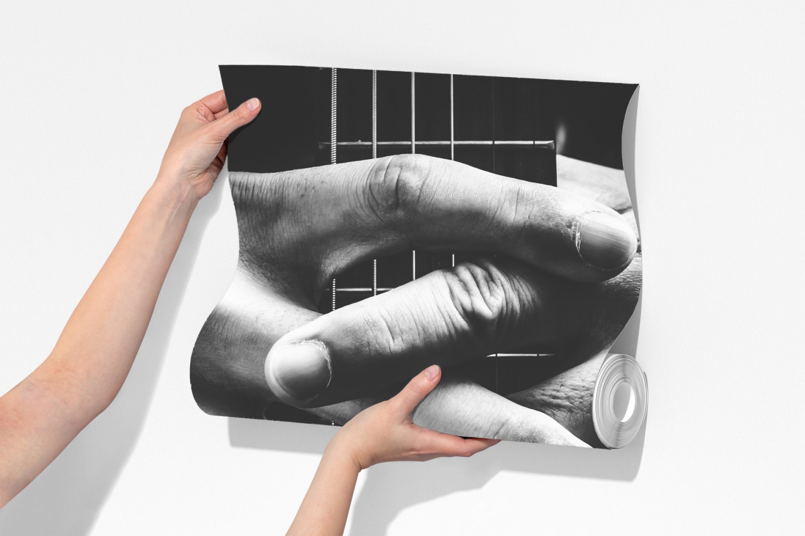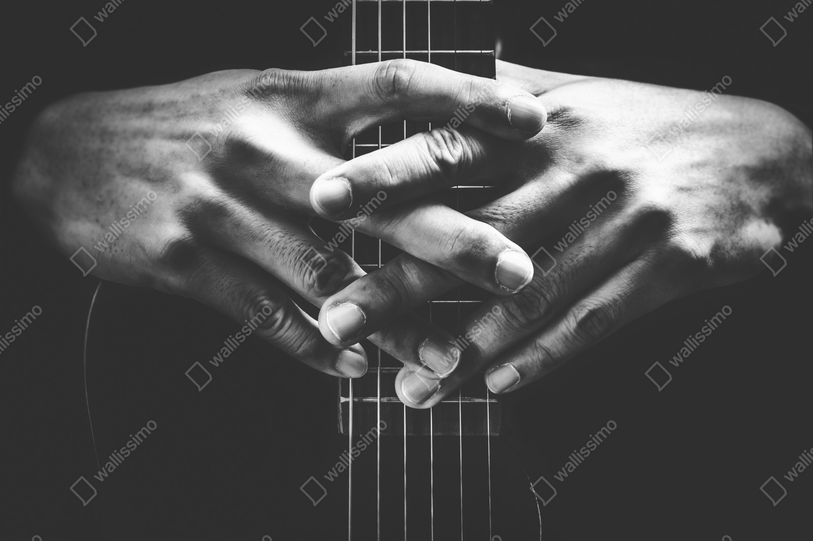 Fototapete verschränkte hände auf gitarrensaiten