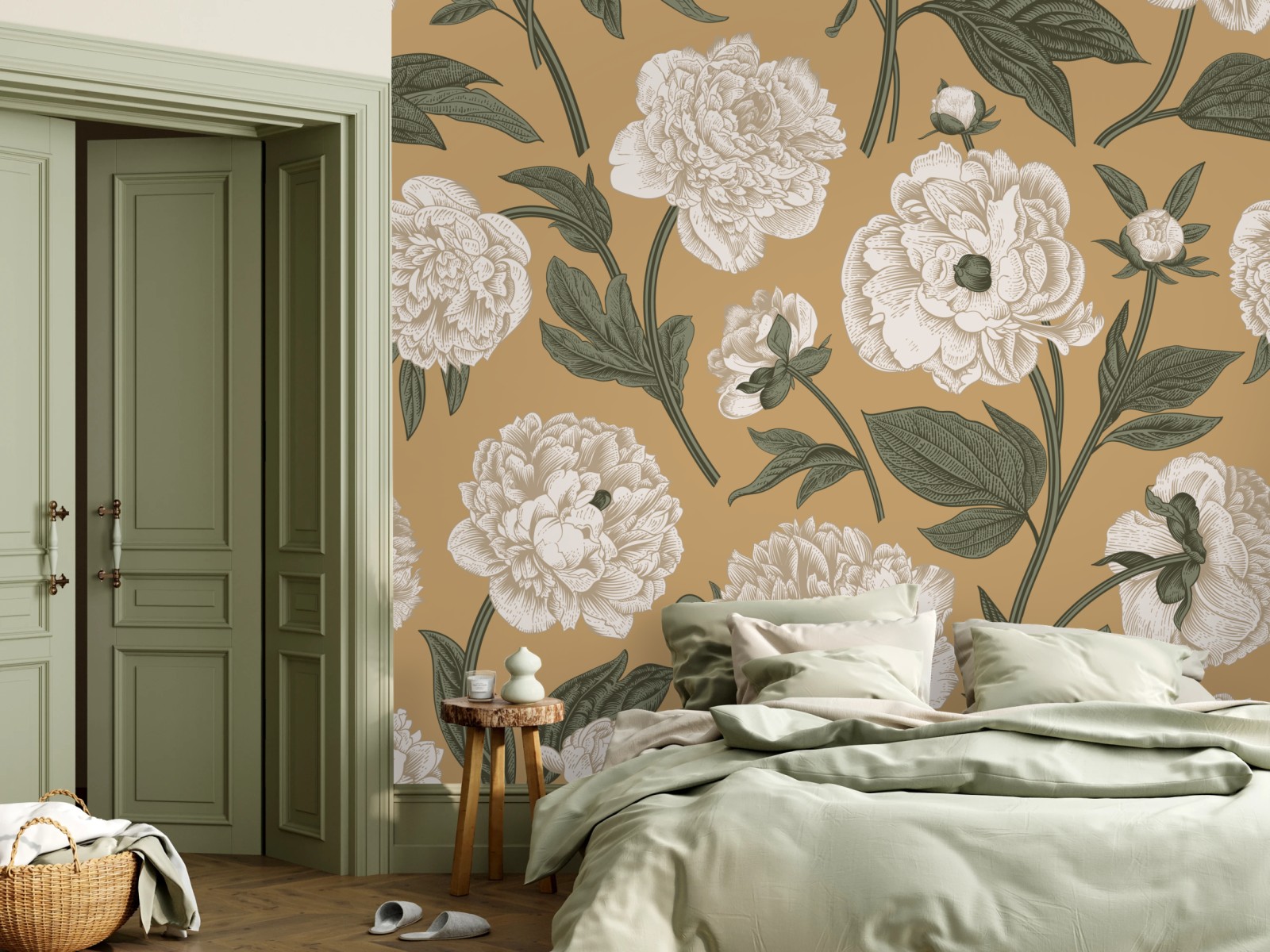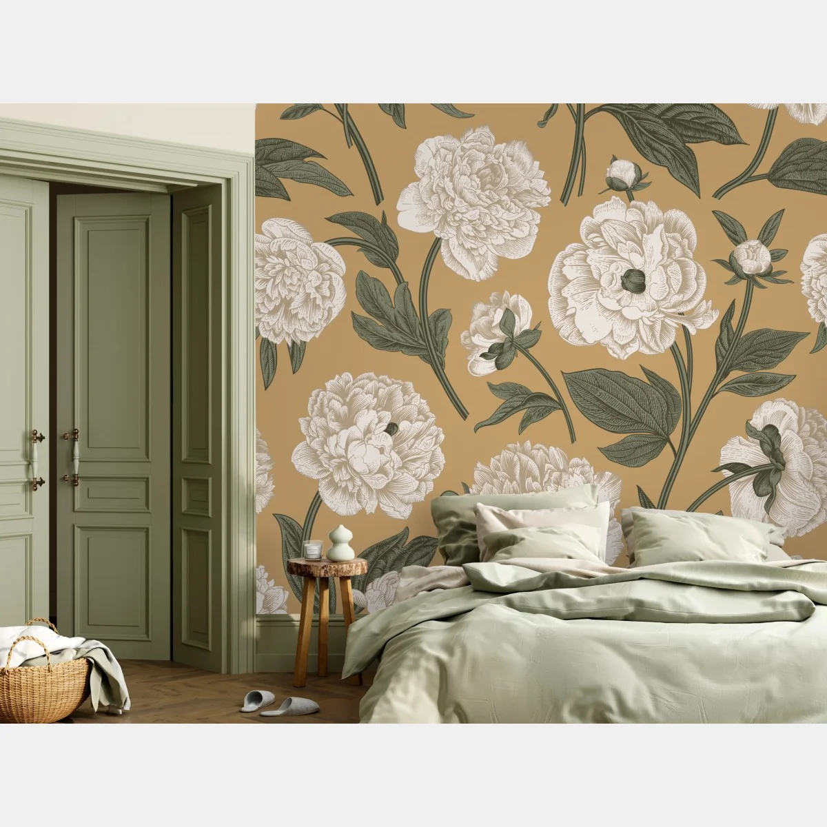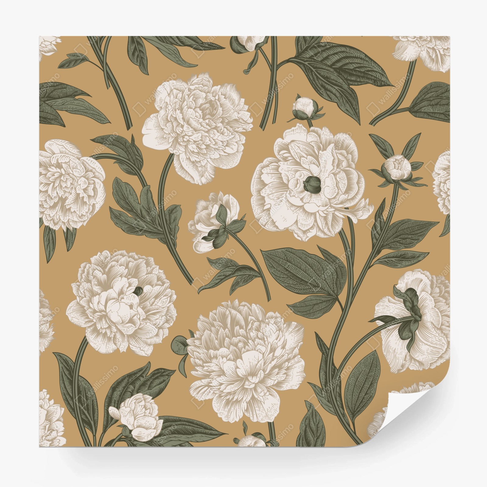 Fototapete Vintage botanisches muster mit pfingstrosen