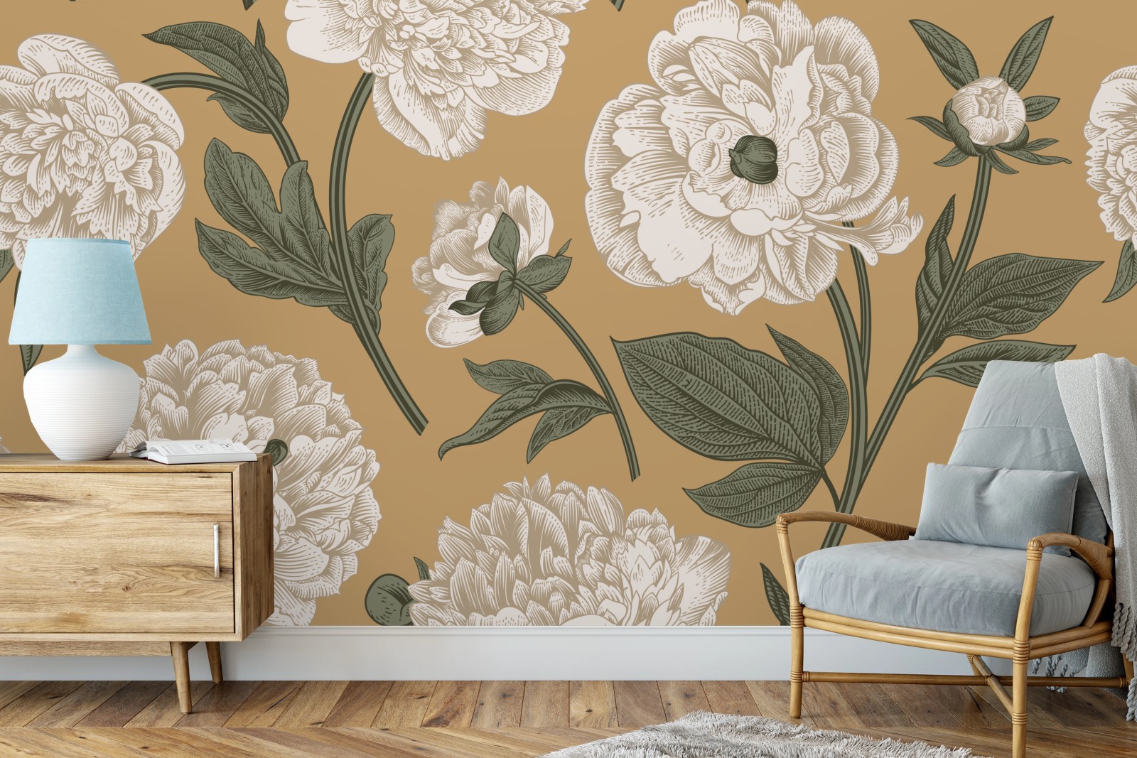 Fototapete Vintage botanisches muster mit pfingstrosen
