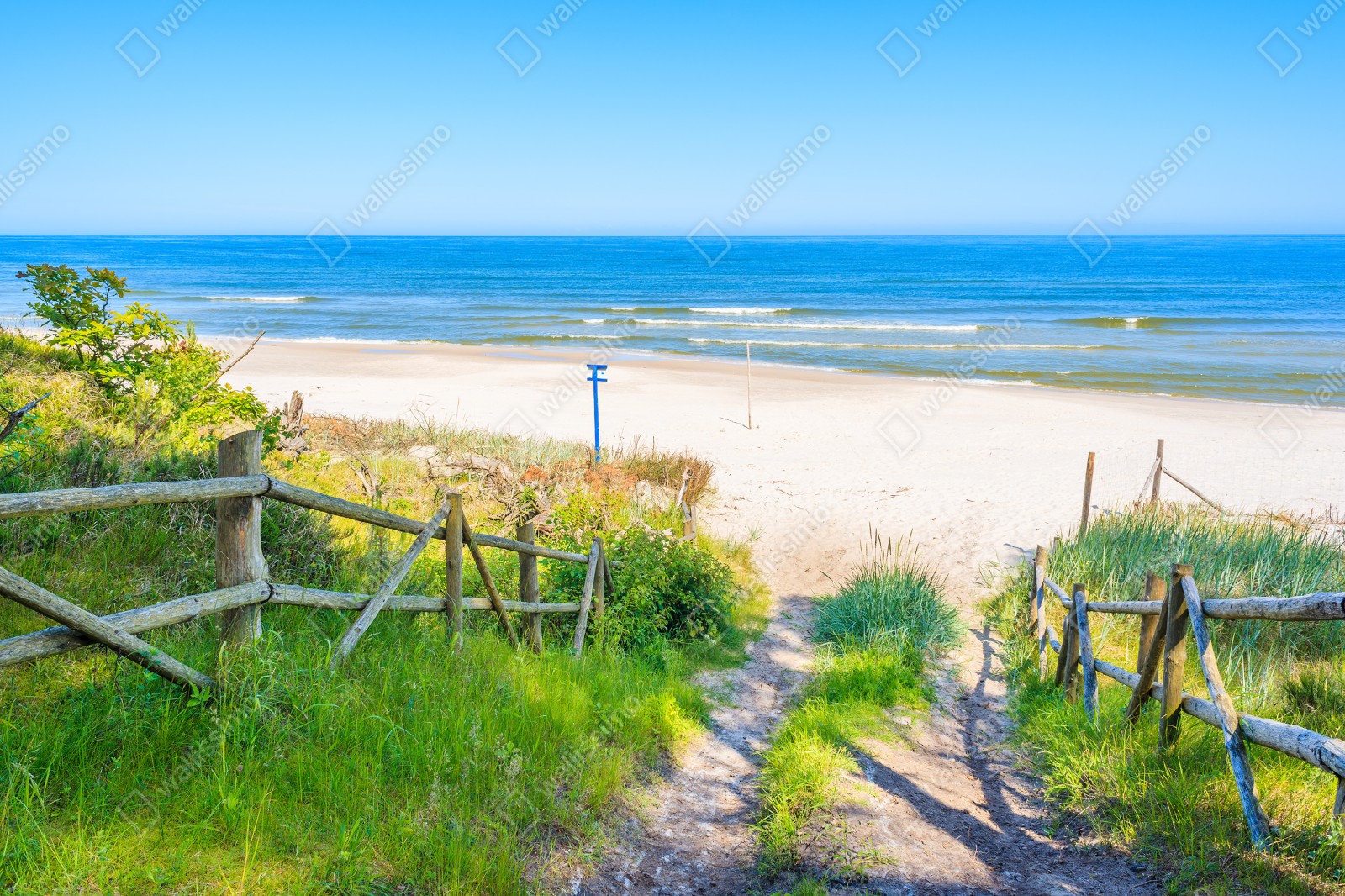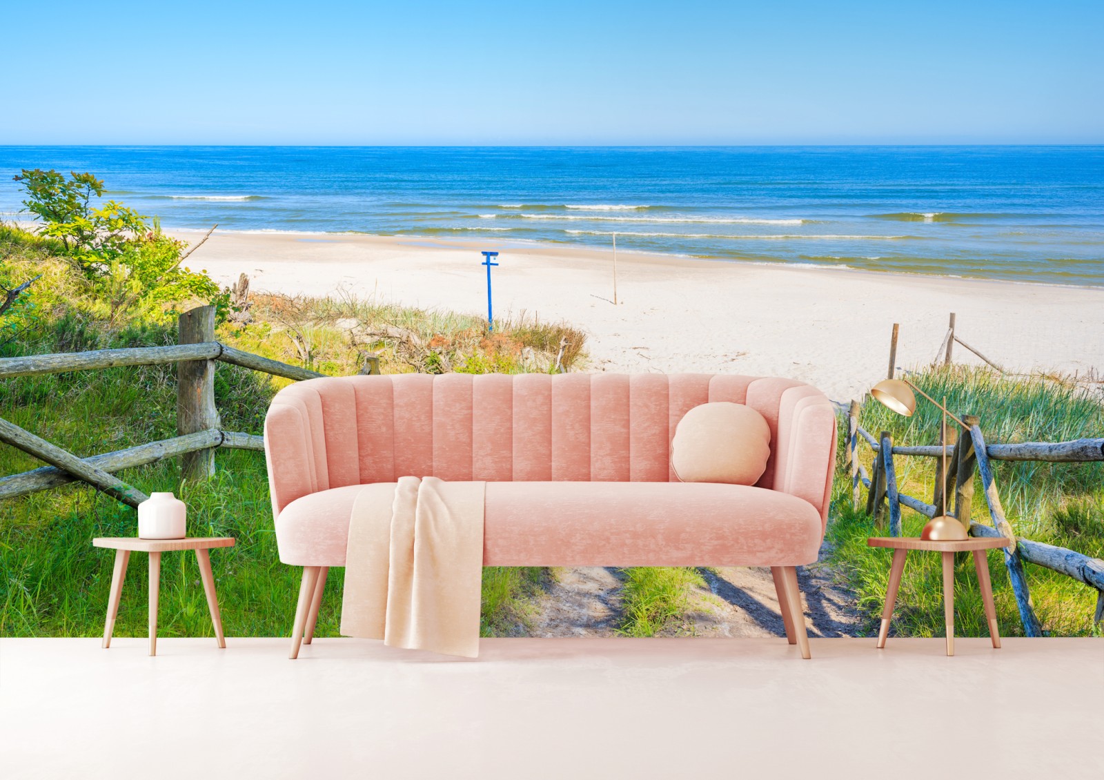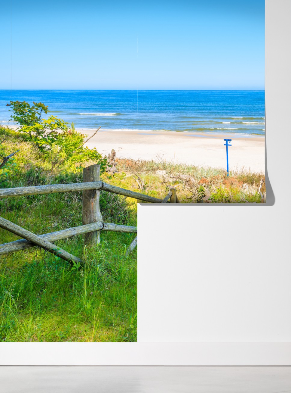 Bringen Sie Küstenruhe in Ihr Zuhause mit einem sonnenbeschienenen Weg zum Strand der Ostsee.