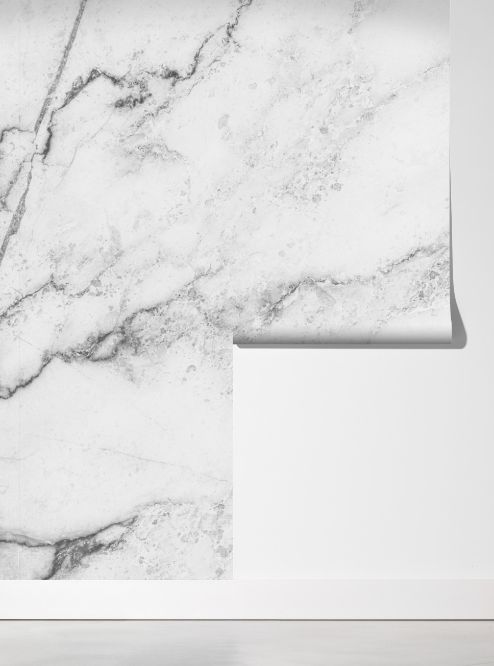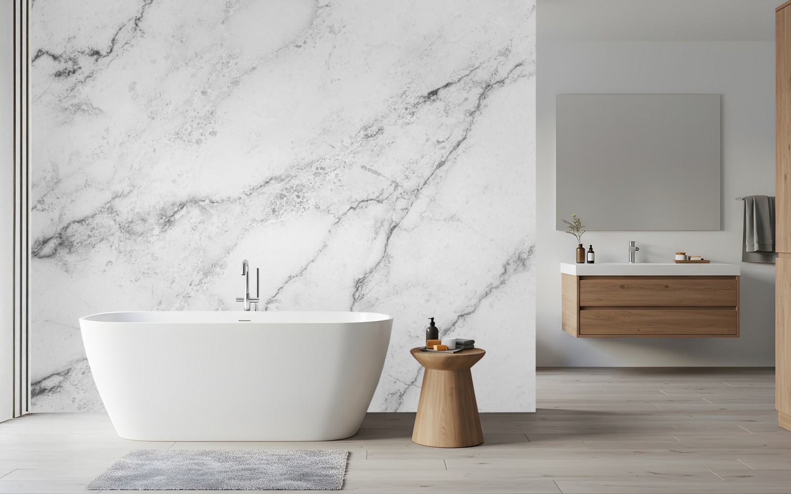 Elegante weiße Marmortextur mit dezenten grauen Adern, ideal für moderne Innenräume und minimalistisches Design.