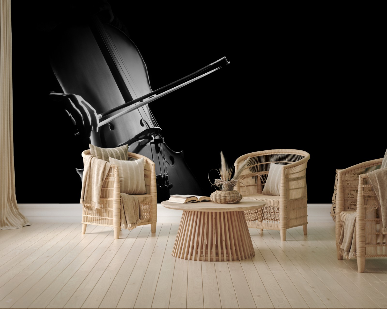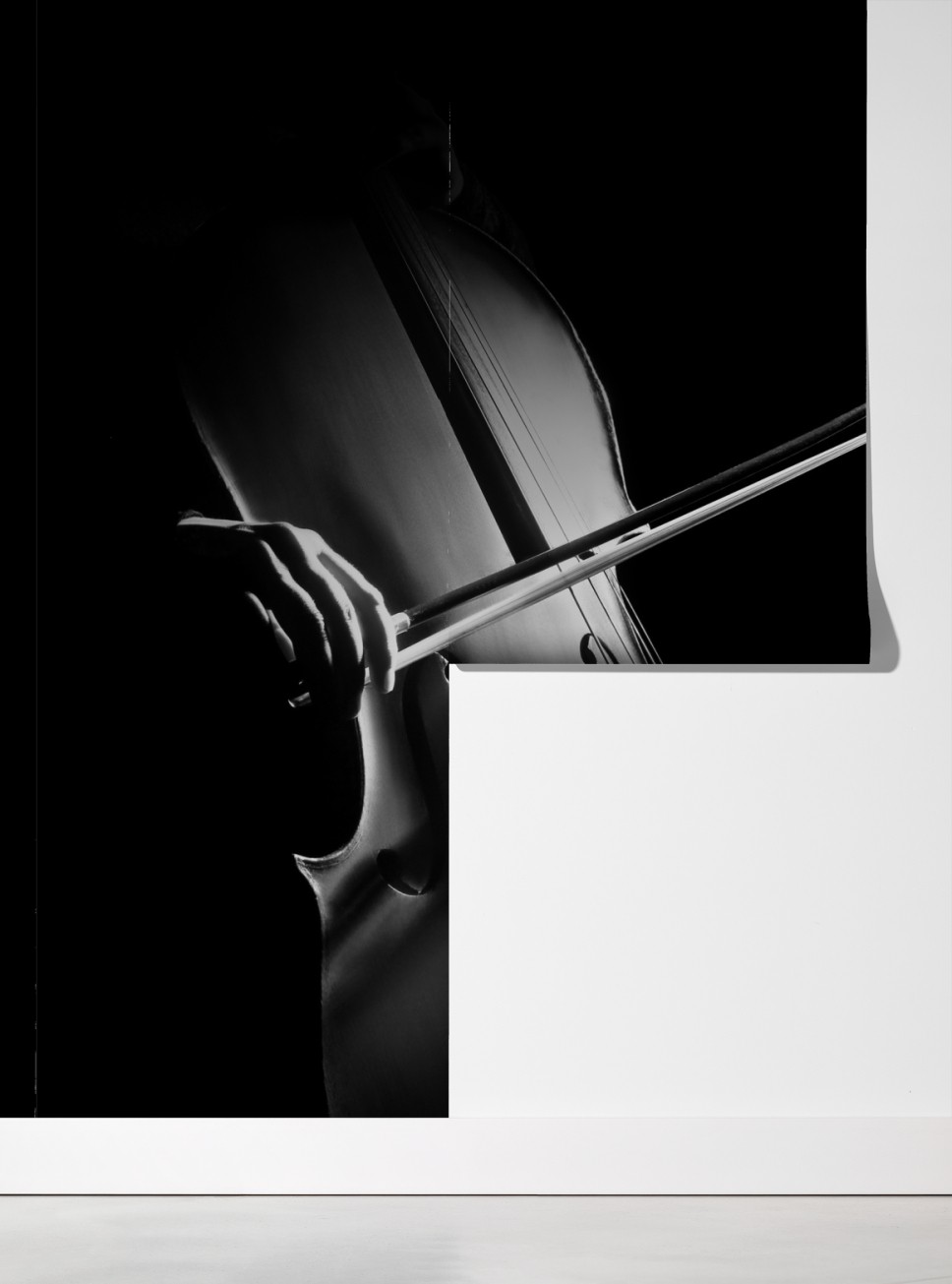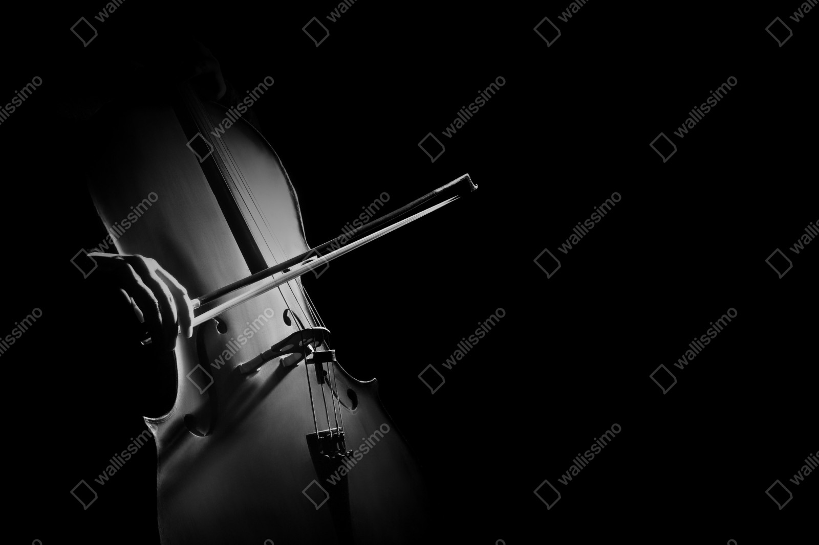 Elegantes schwarzweißfoto eines cellos und cellisten, das die Emotionen klassischer Musik in einer minimalistischen Komposition einfängt.