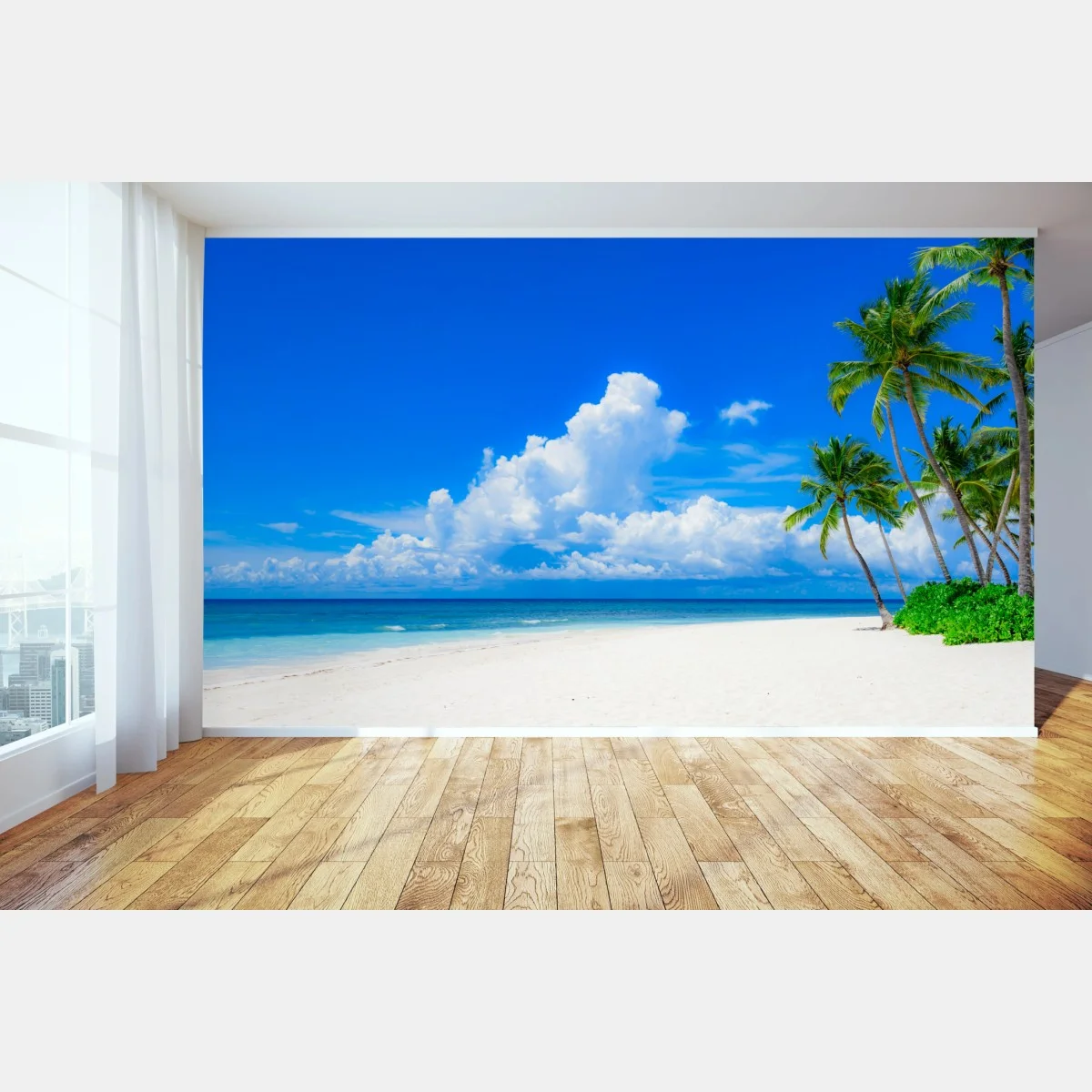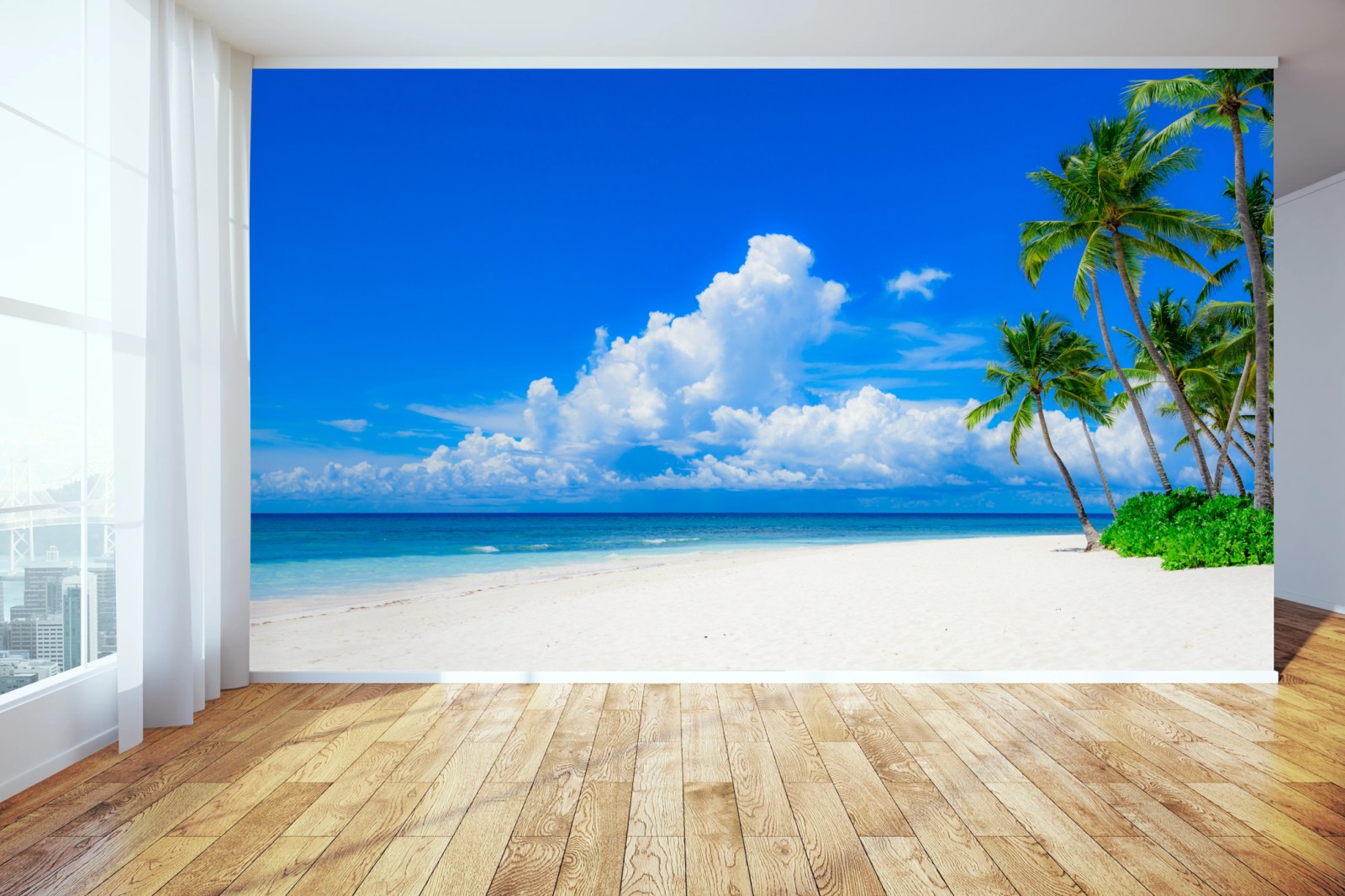 Fototapete Tropischer palmenstrand unter blauem himmel
