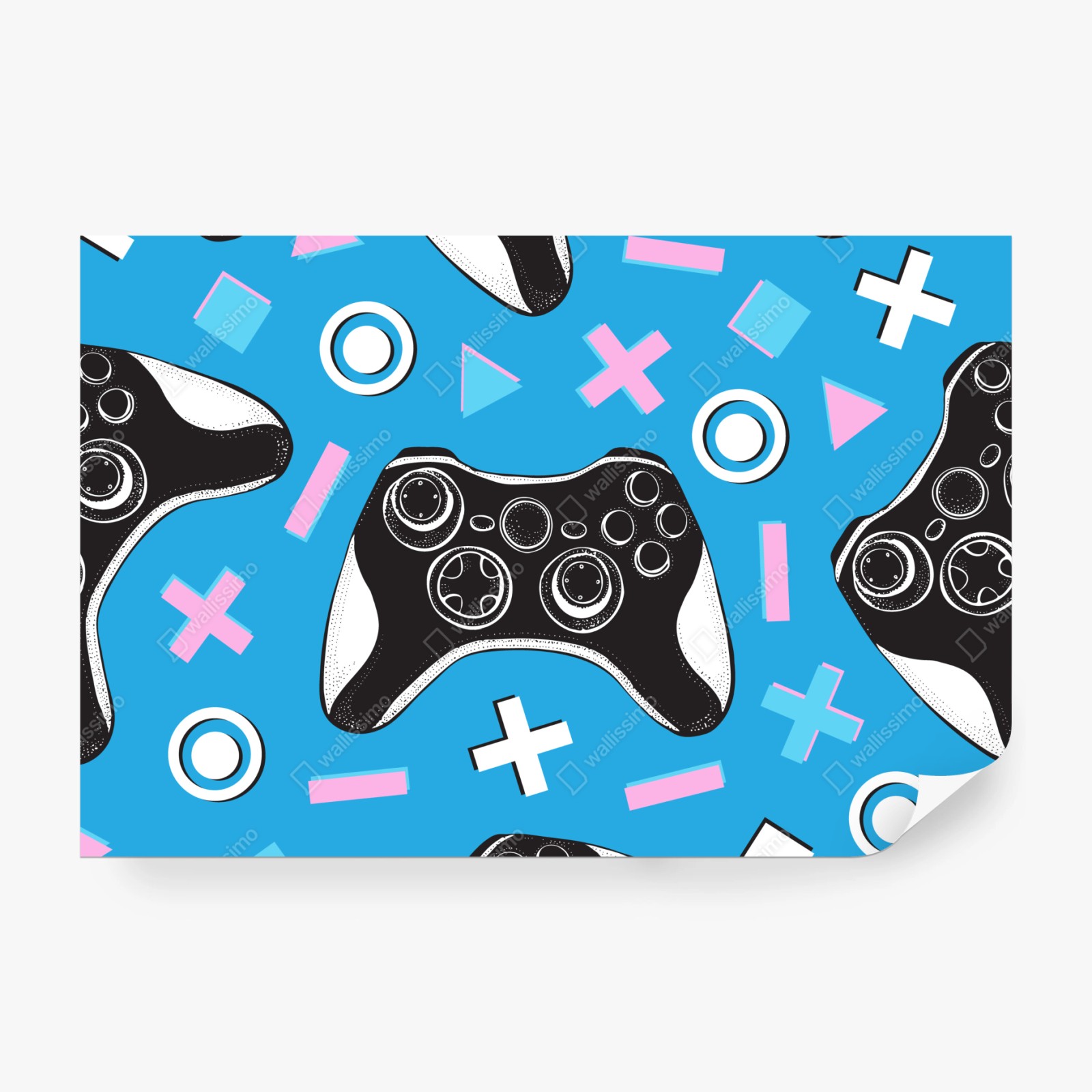 Fototapete Muster mit gamecontrollern auf blauem hintergrund