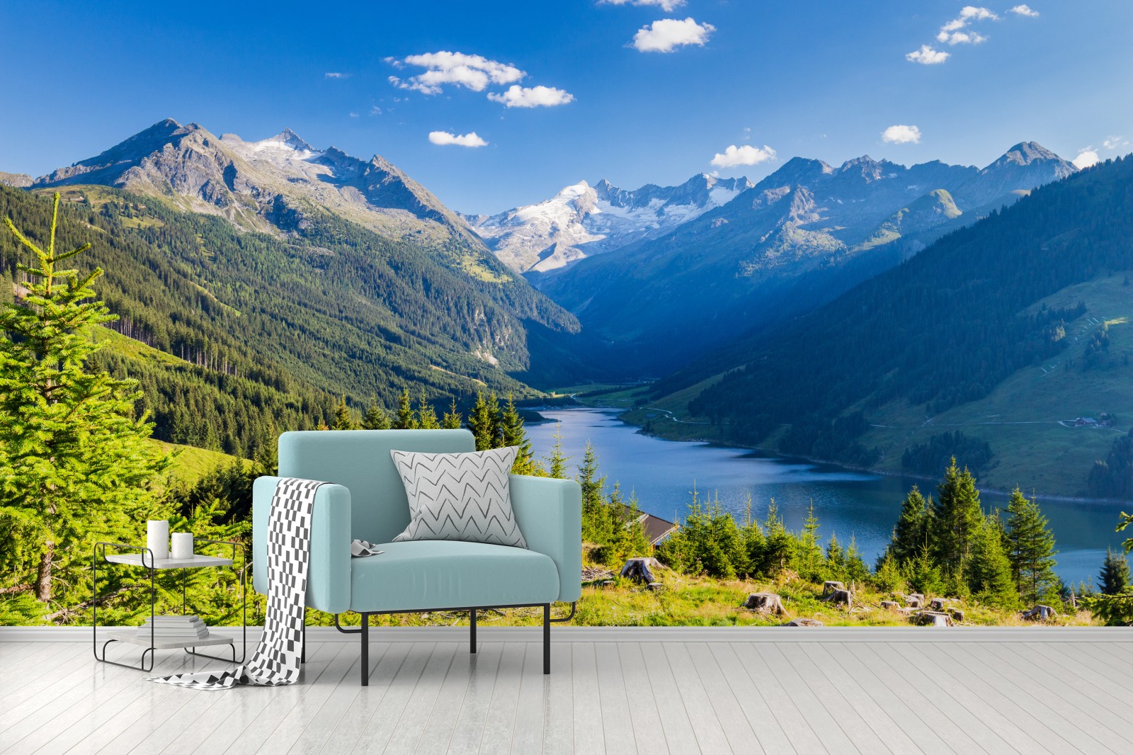 Fototapete Ruhiges tal mit alpensee