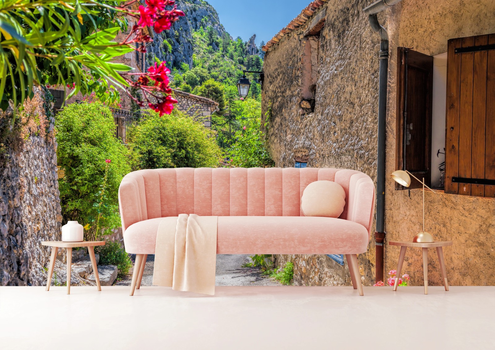 Fototapete Moustiers Sainte Marie reizvolle Dorfstraße in Provence