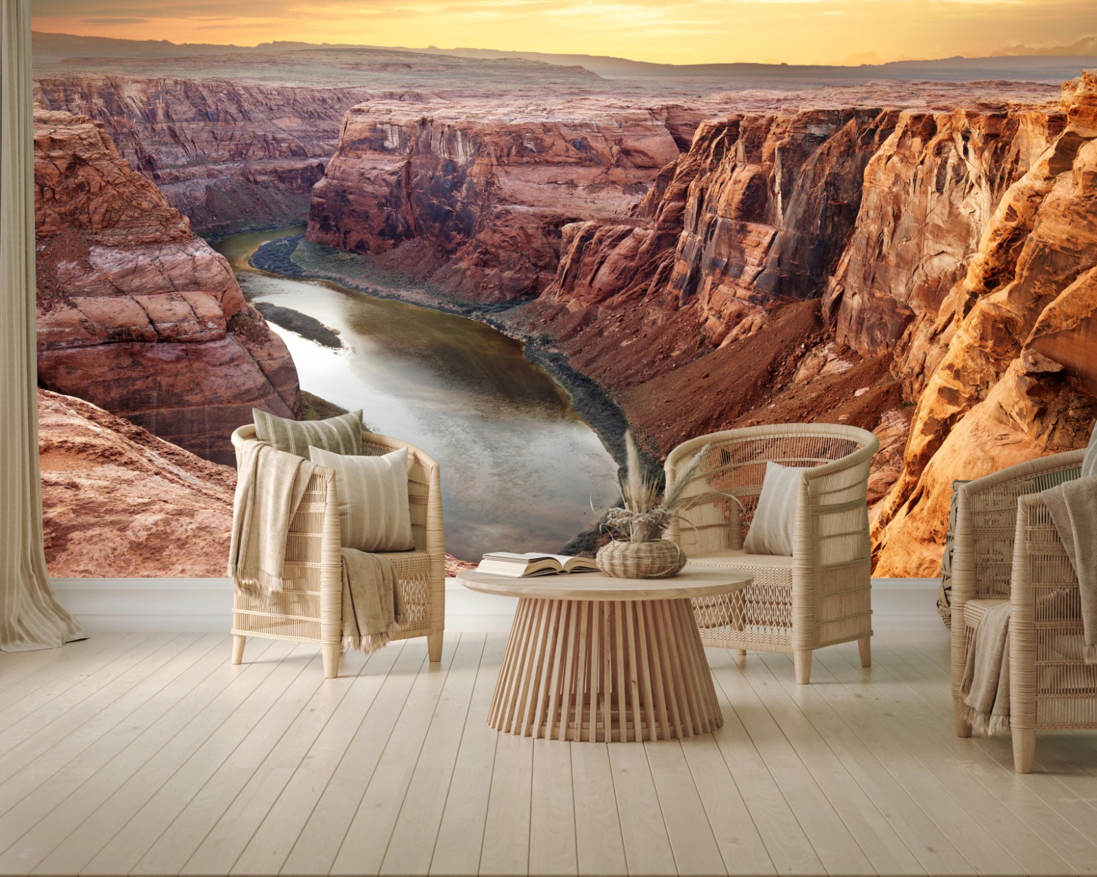 Fototapete Sonnenbeschienener canyon bei Horseshoe Bend, Colorado River